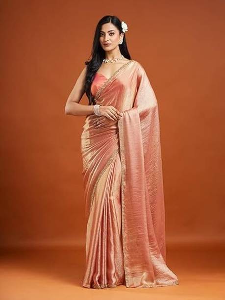 Sarees are timeless fashion wear, and adorning a metallic saree helps you exude glamour and grace. Sarees in gold metallic shades not only add shimmer to your overall look but also give you a royal feel. You can also choose a liquid molten silk saree in silver for a flattering look, especially on Indian skin tones. For a festival or family occasion, you can go for a Kanjeevaram saree or a woven raw silk saree to look your regal best, while keeping in touch with your culture. Any woman building a wedding trousseau should definitely add a fashion staple like a magnificently embroidered net saree. For an attractive reception look, pick a solid satin blend metallic saree. For a more rustic-inspired look, pair the saree with chunky silver or copper jewellery. Pick from the vast collection of ethnic sarees like Banarasi polycotton or Paithani jacquard saree with embellished Zari border. While picking a saree for daily wear, choose a georgette chiffon blend saree for a comfortable yet elegant ensemble. Browse through the collection of the latest metallic sarees online from popular brands like Lorofy, Pochampally Saree, Saara, Glowmorous, Villagius, Palav Fabrics, and many others. The information you are reading has been last updated on 09-Oct-25.