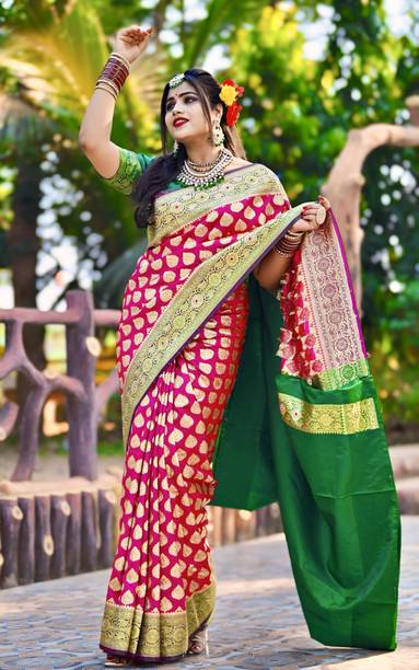 Sarees are timeless fashion wear, and adorning a metallic saree helps you exude glamour and grace. Sarees in gold metallic shades not only add shimmer to your overall look but also give you a royal feel. You can also choose a liquid molten silk saree in silver for a flattering look, especially on Indian skin tones. For a festival or family occasion, you can go for a Kanjeevaram saree or a woven raw silk saree to look your regal best, while keeping in touch with your culture. Any woman building a wedding trousseau should definitely add a fashion staple like a magnificently embroidered net saree. For an attractive reception look, pick a solid satin blend metallic saree. For a more rustic-inspired look, pair the saree with chunky silver or copper jewellery. Pick from the vast collection of ethnic sarees like Banarasi polycotton or Paithani jacquard saree with embellished Zari border. While picking a saree for daily wear, choose a georgette chiffon blend saree for a comfortable yet elegant ensemble. Browse through the collection of the latest metallic sarees online from popular brands like Lorofy, Pochampally Saree, Saara, Glowmorous, Villagius, Palav Fabrics, and many others. The information you are reading has been last updated on 09-Oct-25.