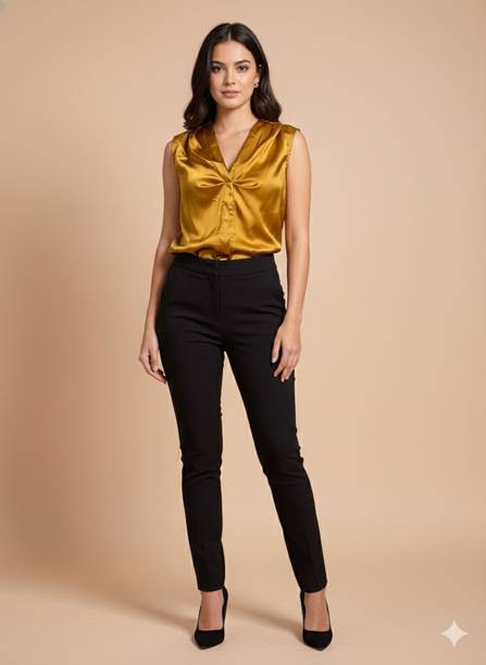 Match It With a Pair of Black Pants: If you are planning to wear such a top with a pair of pants, we suggest you opt for a pair of black pants. So, if your top is metallic gold or silver in colour, then you will look best by matching it with such a pair of pants instead of denim pants. You must make sure to wear skinny-fit pants. You can finish the look by wearing a pair of ankle-length boots.
