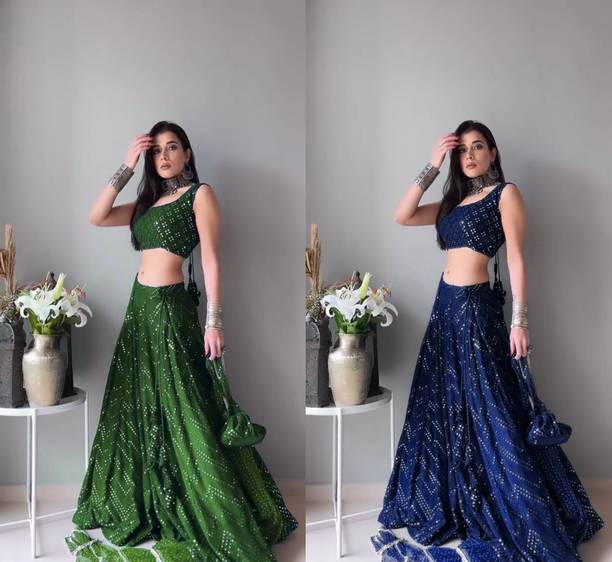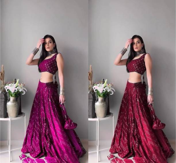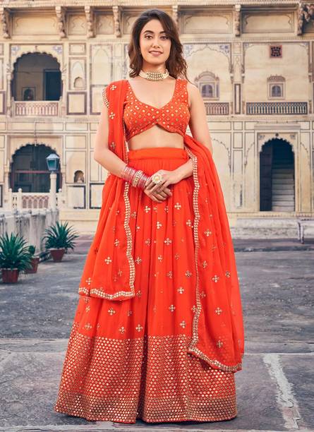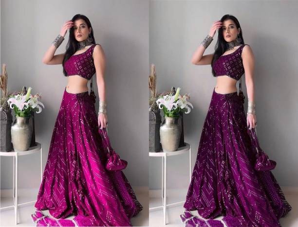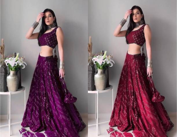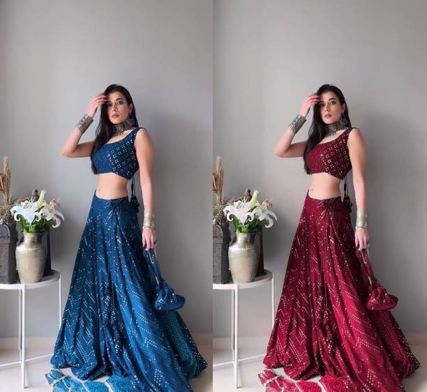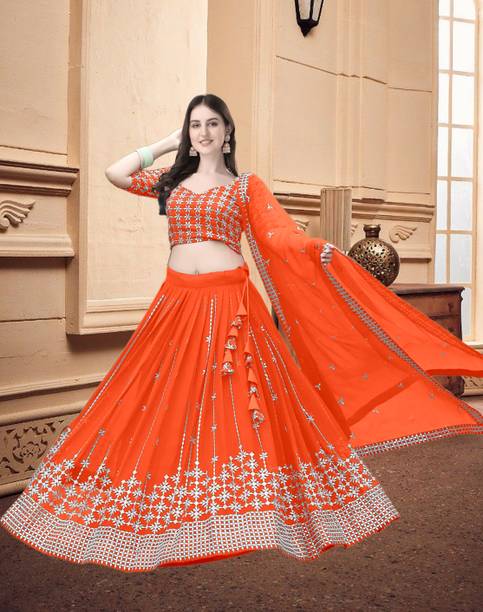 Mirror work lehengas are one of the popular and preferred choices for bridesmaids and party-goers. Ideal for weddings, parties or casual wear, these attires are stunning creations with a touch of glamour and sophistication. The mirrors are often hand-embroidered, also known as shisha, or are stuck using special glue. These are attached to the dupatta, top, or skirt based on the design. The lehengas are often semi-stitched and can come with or without the dupatta. Available in patterns like paisley, floral, embellished and in an array of colours, you can experiment with various looks by pairing the skirt with crop tops, kurtas, cholis etc. You can browse for the latest mirror work lehengas from brands like FASHION BASKET, B4U FASHION, KONISH, YOYO FASHION, Fashionuma, and many more. Mirror work can be done on materials like chiffon, georgette, velvet that can make a simple fabric into an elaborate garment. With varying sleeve lengths like full, halve, sleeveless, you can choose lehengas based on your preference, occasion, and comfort. The mirror work can include glass, silver, and mirrors that give a reflective surface. While selecting, ensure to check the wash care label for long-lasting and durable wear. You can shop for mirror work lehengas online and add them to the cart for doorstep delivery. The information you are reading has been last updated on 12-Jan-26.
