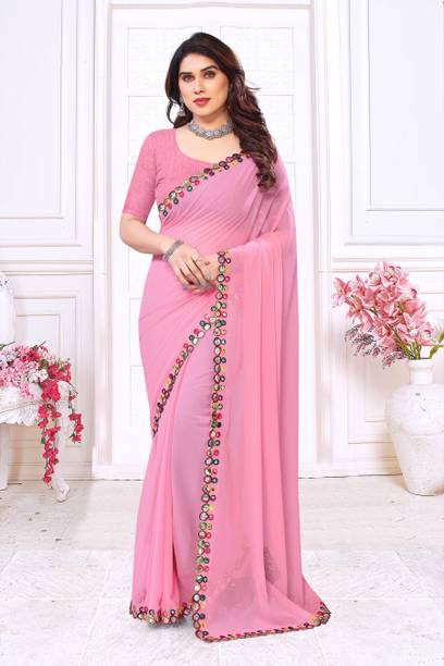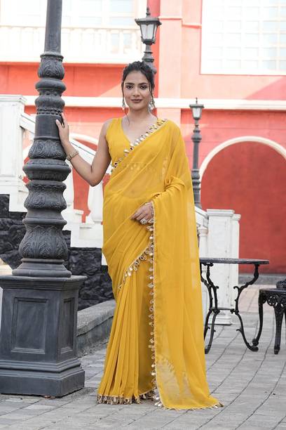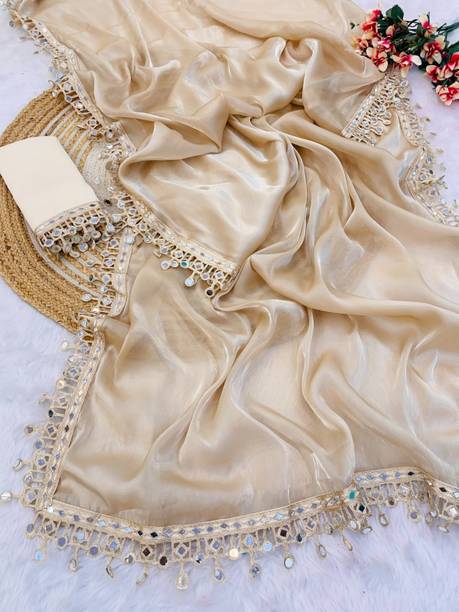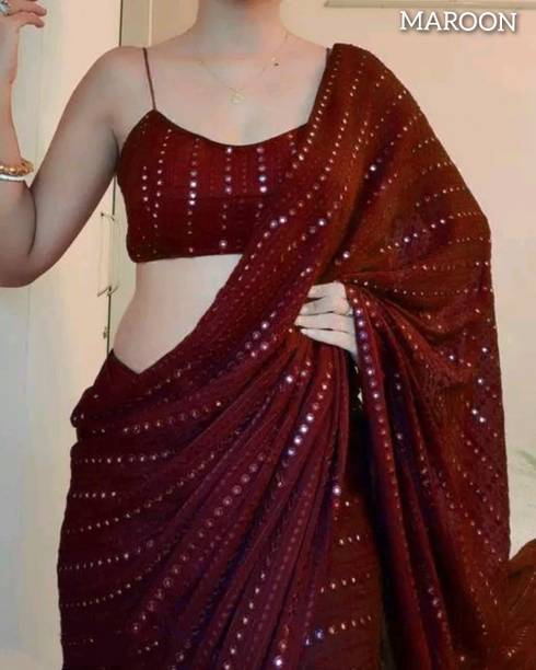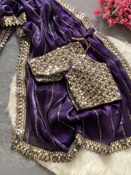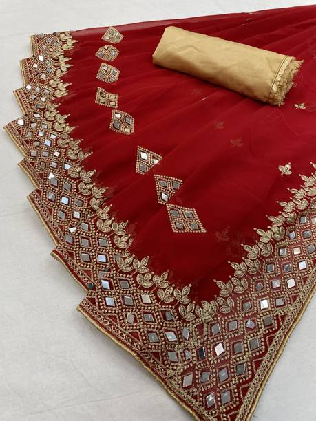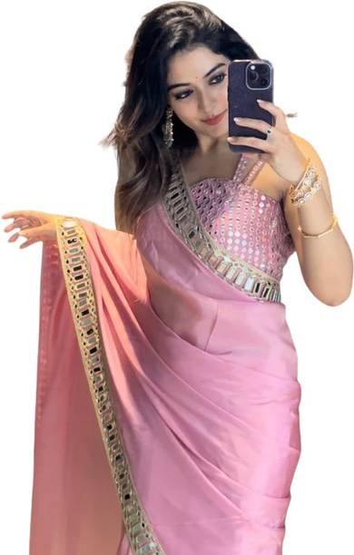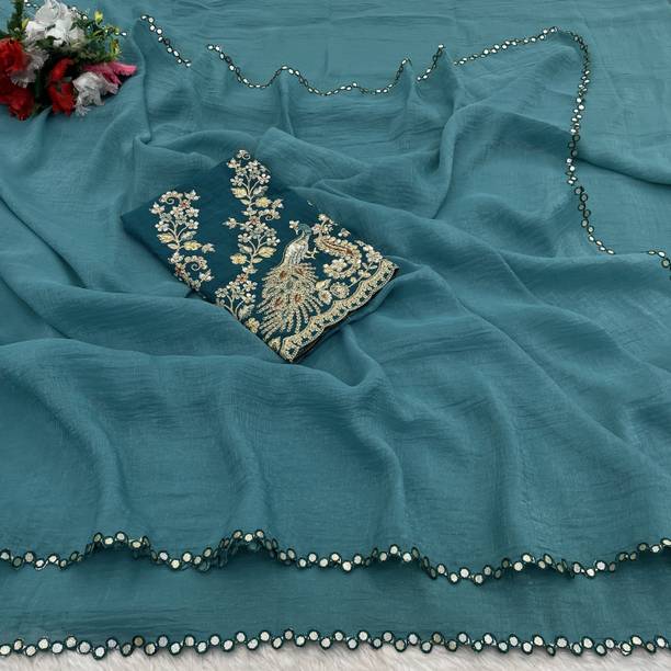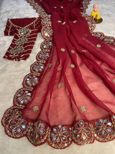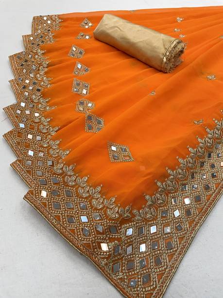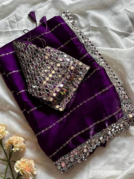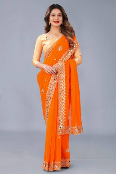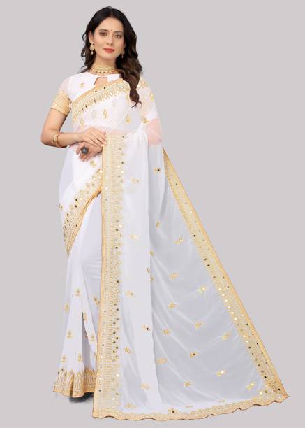 Fabric Mirror Work Saree