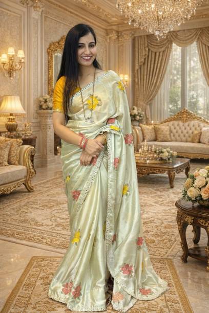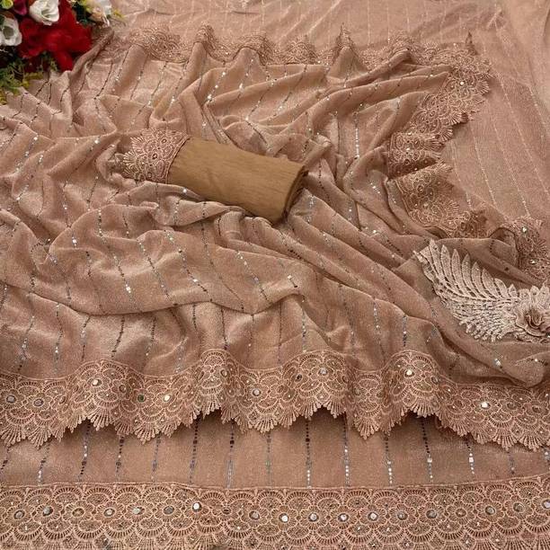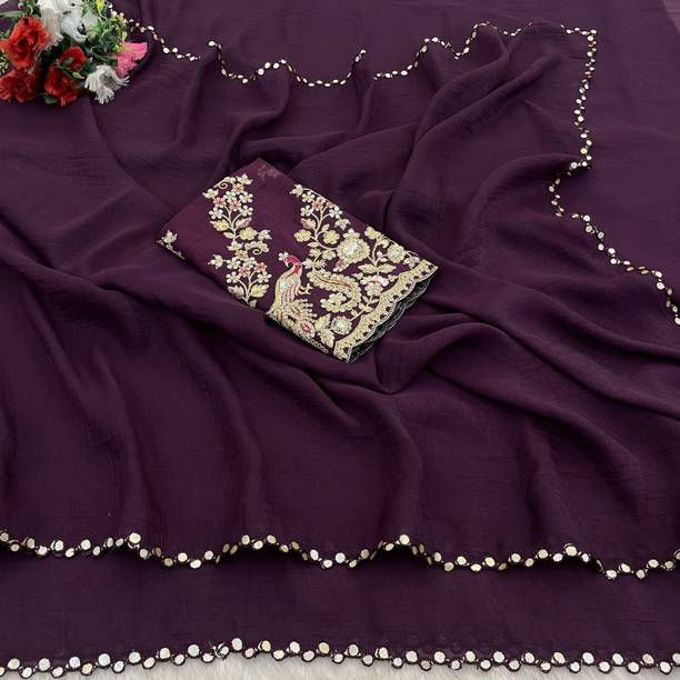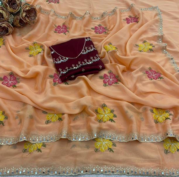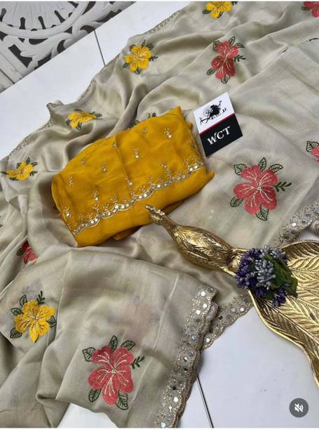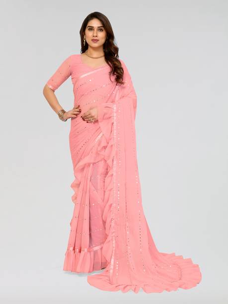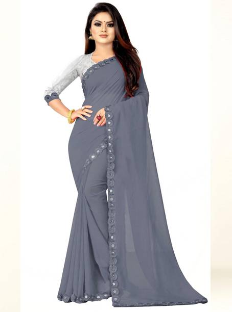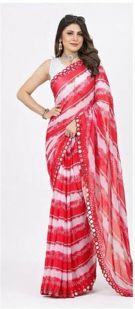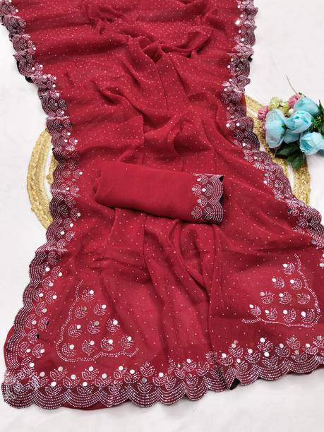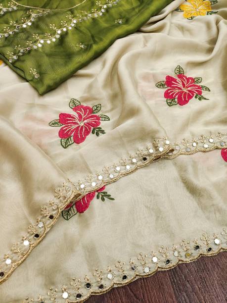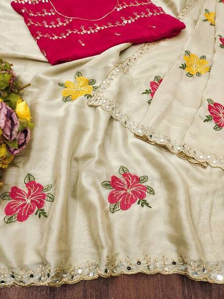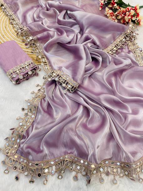 Fabric Mirror Work Saree