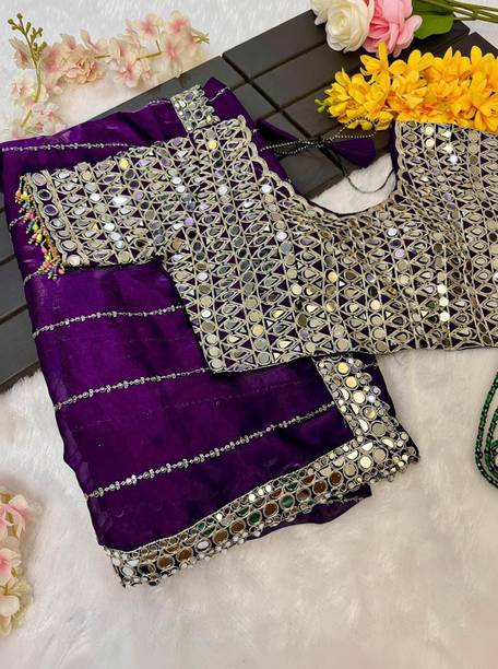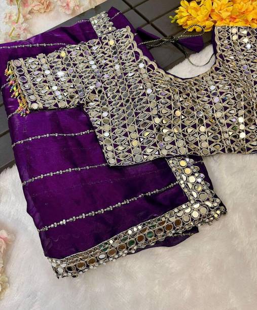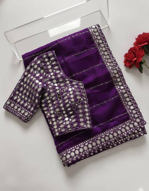 If it has small mirrors with heavy work sarees embroidery, the sleeves of the blouse can be decorated with these mirrors of matching size.
