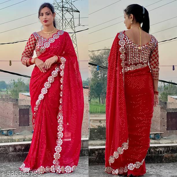 Saree depicts typical Indian tradition and culture. Although every state has its own variety, there are different varieties and patterns for each kind of saree. A saree reflects the symbol of a deity, motherhood, modesty, and humility. Speaking of reflections, mirror work sarees are one of the most beautiful sarees a woman can wear. You should have at least one mirror work saree in your wardrobe.