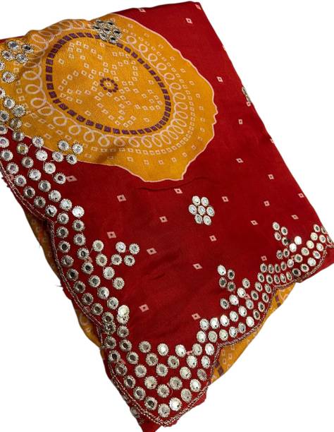 This is the authentic style of Gujarat. The saree is composed of more than one color and has mirror work scattered throughout the cloth. The mirrors used for this saree are generally small and are accompanied by tiny beads and embroidery work. Therefore, these sarees look a lot more grand when compared to other sarees of similar styles.