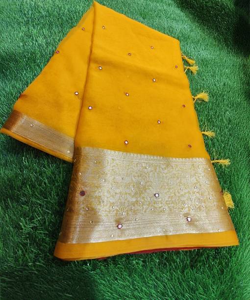 Fabric Mirror Work Saree