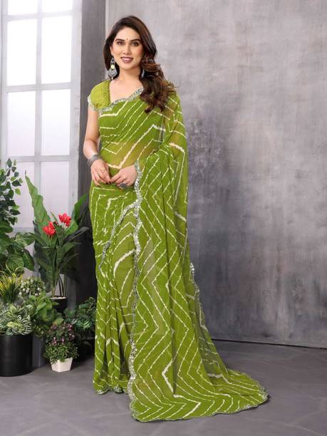 Chiffon, Jacquard, Georgette, and Lace are materials that are used to craft these divine sarees. They are soft, lightweight and can be handled with ease. They are low maintenance fabrics, so it is easy to wash them as well!