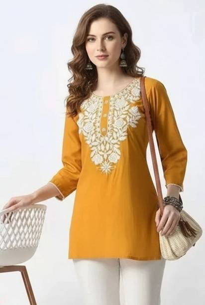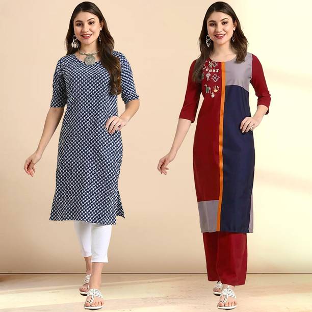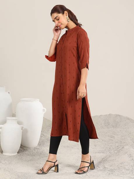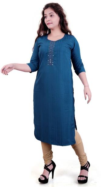 Kurtis are the go-to choice for most women on any given day. Wear a trendy set of modern sleeve designs for kurti with matching leggings, high heels, and ethnic jewellery, and you are good to go. They are a perfect and stylish blend between a modern and ethnic style and can be worn to any formal, casual, or festive event. They are available in various sizes from extra small to six extra large and in a variety of colour combinations or self colours. Select the latest kurti with different lengths like calf-length, above the knee, below the knees, ankle, etc. You can choose from many sleeve lengths like full, half, three-fourth, short, and sleeveless. Select from multiple new themes like digital florals, block prints, tropical saree dress, bagru, stripes, geometric, quirky prints, and more. From beautifully embroidered options to bead and stonework, aari work, and sequined varieties, there is an abundant collection to pick from. Based on your favourite fabric, you may opt for kurtis in pure materials or blends like rayon, cotton blend, polyester, lycra, crepe, poly cotton, satin, cotton silk, etc. Buy modern sleeve design for kurtis online, from brands like Rangmanch by Pantaloons, Urban Creation, Textile Fab, J 2 Fashion, Success Mantra, etc. Place your order online for easy doorstep delivery.
