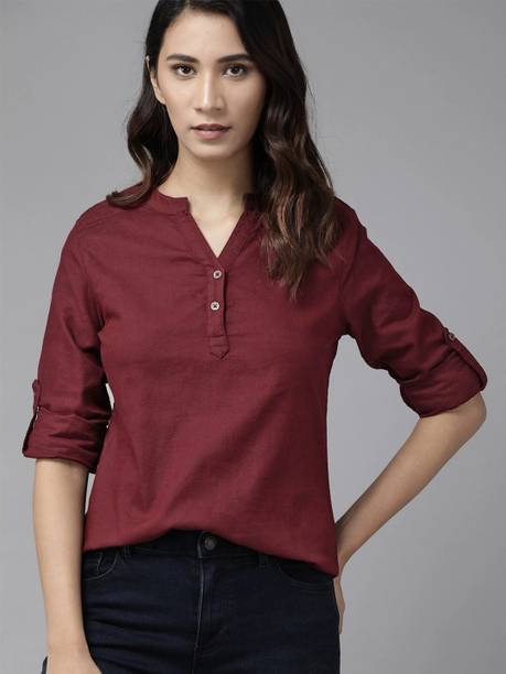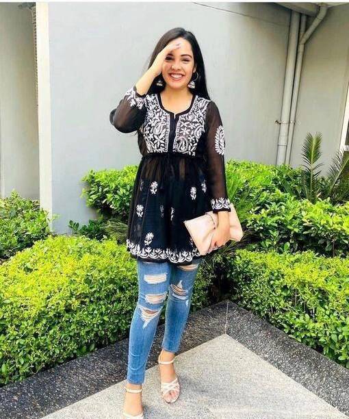 Every woman's wardrobe needs modern tops for jeans that are made of breathable materials. Stay in style and at ease with tops that are all about party vibes. You can also find stunning pieces with neck designs like one shoulder, shirt collar, polo neck, shawl neck, crew neck, turtle neck, and others. Search tops for occasions like parties, casual, formal, festive, weddings, loungewear, and various others available online. This stylish piece of clothing deserves a spot in your wardrobe. You can slip into comfortable tops no matter where you go. To meet your style preferences, you can find this garment in various patterns like solid, printed, embroidered, striped, floral print, self-design, and others available online. Brands that sell this modern top are Only, Forever 21, Urbanic, Levi's, Van Heusen, and others. Pastel colour attire acts as an effortless piece of clothing that will make you look sophisticated. To stay comfortable throughout the day, you can pick an attire from fabric options like bhagalpuri silk, georgette satin blend, synthetic leather, poly crepe fabric lining inside ruffled, jacquard, cotton satin blend, and others. Get your hands on modern tops for jeans available in myriad designs and colours to create a perfect fashionable look.