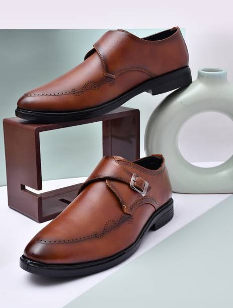 Varito 100 % Genuine Leather Officer Look Formal Monk Strap For Men