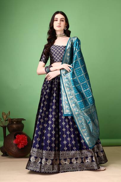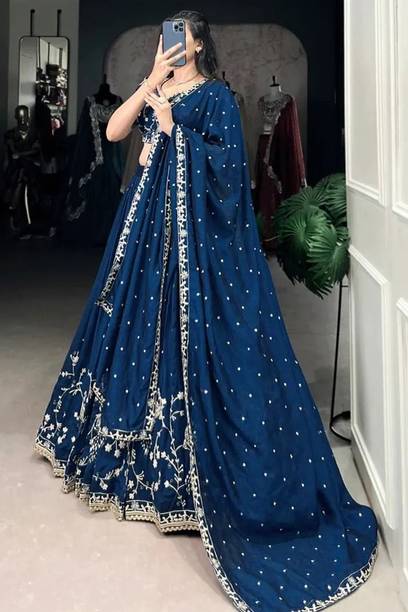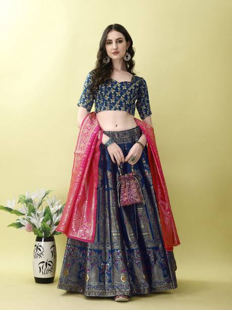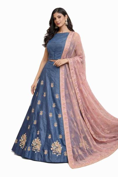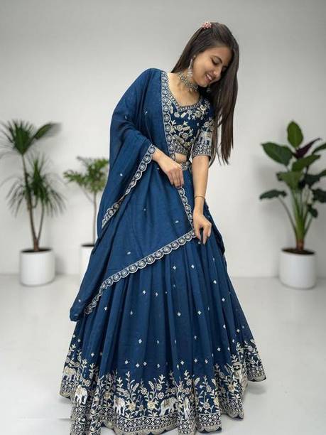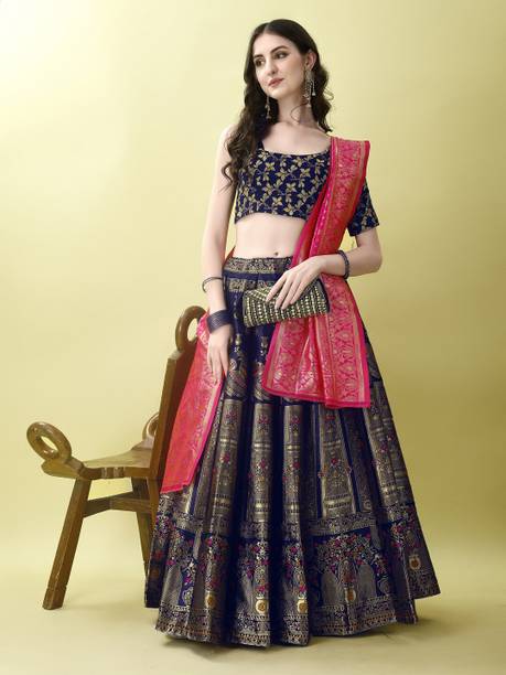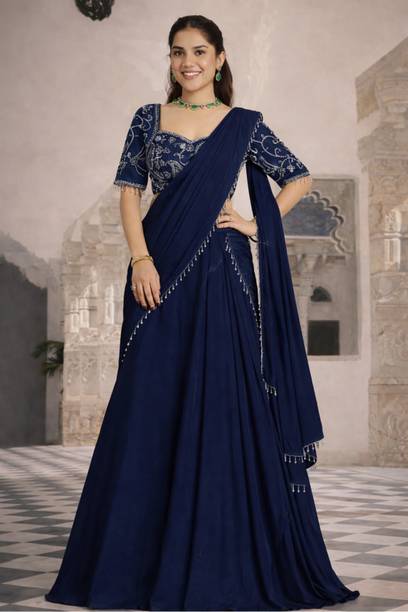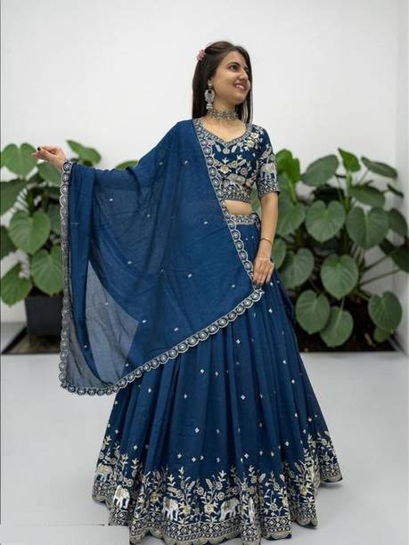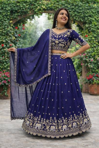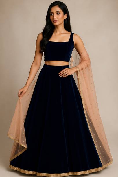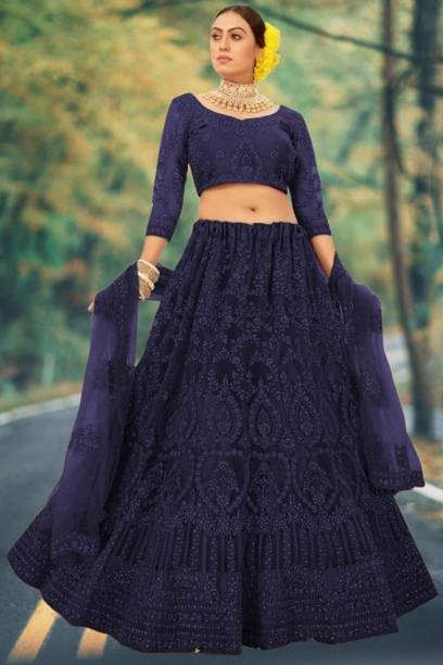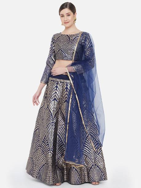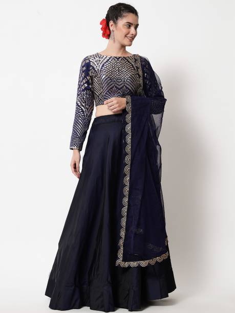 If you are searching for trendy ethnic apparel for festive occasions, navy blue lehenga designs can be perfect. Add these charming outfits to your closet and make a unique fashion statement. The irresistible look of traditional attire with royal shade will make you look gorgeous on every occasion. The colour is quite different from ordinary blue and has a bold shade, making you look charming and confident. Attires come with elegant colour contrasts like gold, red, pink, light blue, yellow, and so on. They are available in different sleeve lengths such as full sleeves, half sleeves, ¾ sleeves, short sleeves, and sleeveless. Check out the trendy navy blue lehenga collection and choose the designs that blend well with your personality and style. You can pick from various patterns, including chevron, embroidered, striped, paisley, graphic print, bandhani, solid, and so on. Ethnic dresses are made of quality materials such as net, velvet, polyester, satin blend, georgette, viscose blend, pure silk, and more. Everything can be found online, from Rajasthani poshak sets and choli styles to jacket and skirt styles. Shop from the comfort of your home from brands like Pranitha, Divastri, Pink She, Shopping Villa, Trivety, and many more.