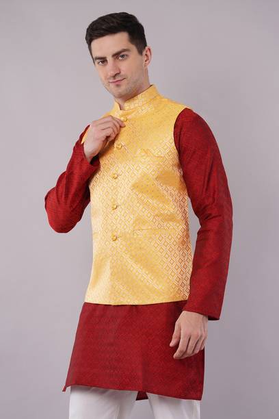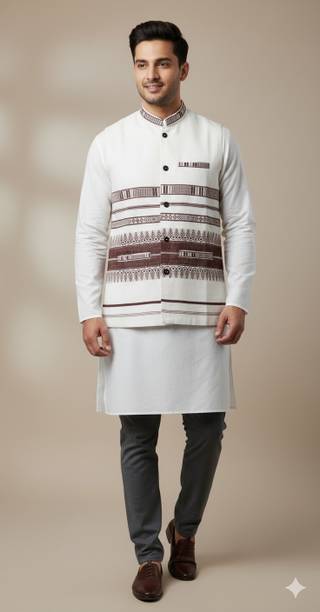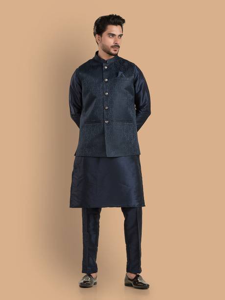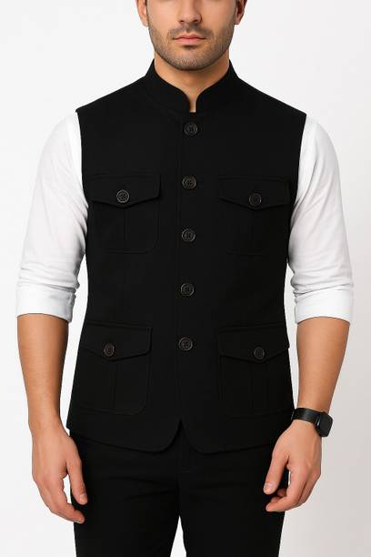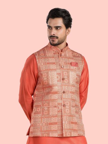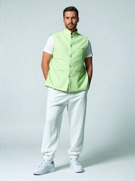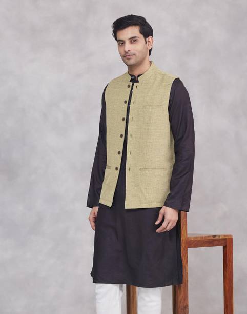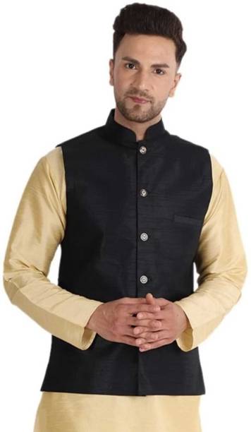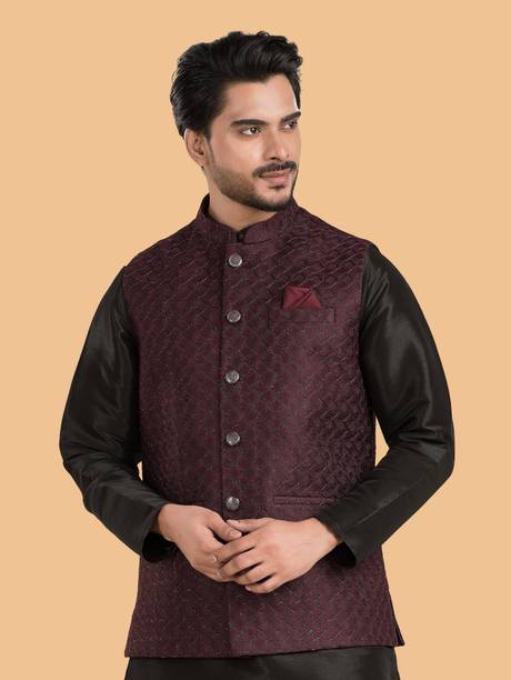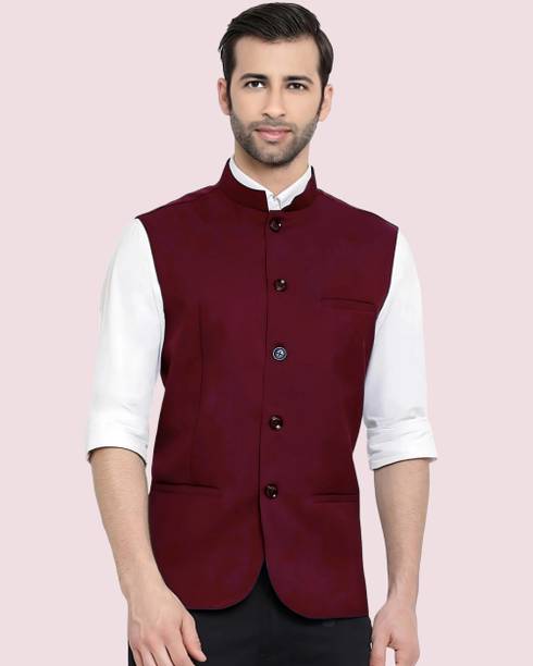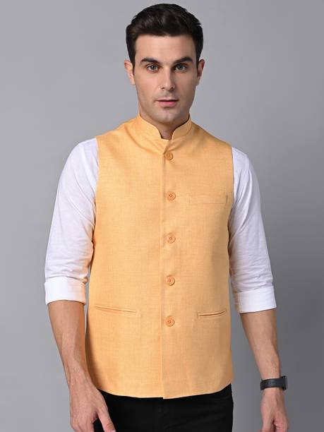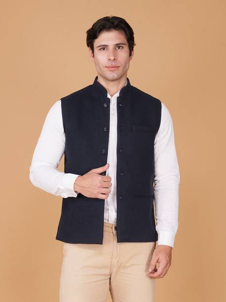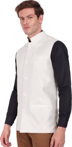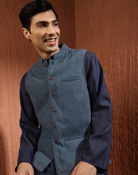 A Nehru jacket is a classic and elegant piece of clothing that has a sleeveless design, which sets it apart from conventional blazers or suits. The jacket typically features a straight cut, a mandarin collar, and a button-down front. The minimalist look and versatility of this jacket have made it a preferred choice for both formal and casual occasions. Whether you are attending a wedding or want to look stylish for a formal event, this jacket can be teamed up with a kurta and churidar or worn over a shirt and trousers. For a more casual setting, pairing it with jeans can give it a relaxed yet trendy vibe. Apart from that, the fabrics commonly used to craft these jackets include silk, wool, cotton, linen, and brocade. You can choose the fabric that best matches your level of comfort. Silk is known for its elegant texture, wool offers warmth, linen provides breathability, brocade showcases intricate patterns, cotton showcases versatility, velvet adds luxury, and satin imparts a glossy finish. You can explore the latest online collection of Nehru jackets from brands online, such as Allen Solly, A P Creation, One 10, Vriaane, Kaifoo.