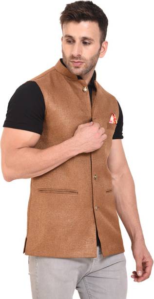 Nehru jackets for men add elegance to your style at formal or casual occasions. Sleeveless Nehru jackets for men are available in a variety of prints to meet your preference and styles. Vibrant colours and attractive patterns make them a perfect wear for men of all age groups, body types, and complexion. The latest Nehru jacket for men's new collection includes a wide range of jackets in various fabrics like Banarasi, cotton, silk, blend, and beyond. It comes with perfectly crafted stitching and gives you the best fit. The sleeveless jackets with mandarin collar and button closure are available online at the best price and exclusive offers from brands like JIHUZUR, PETER ENGLAND, Tabard, Hangup, AVAETA, and more. You can choose from a plethora of patterns, styles, lengths, fits, and other details. Some jackets are reversible and can be worn on both sides. Slim fit and perfect fit options let you choose fitting as per your comfort style. Add a variety of jackets to your wardrobe and stay sharp for every occasion. You can pair them with your shirt or kurta for a chic evening party and be selfie-ready at all times. Purchase from the comfort of your home and have it delivered to your doorstep. The information you are reading has been last updated on 27-Dec-25.