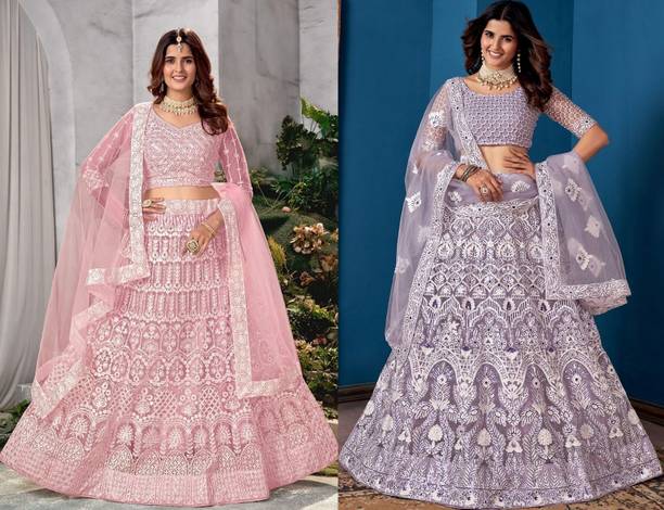 Uplift your look for weddings, parties, and festive occasions with net lehengas. Explore the range of lightweight and breathable fabric, offering intricate embroidery, sequins, and embellishments. It gives you a distinctive charm. Whether for your anniversary or a festive occasion, it is a must-have in your ethnic wear collection. Additionally, a lehenga is available with a wide range of designs, from traditional to contemporary. If you seek a hassle-free option, a semi-stitched lehenga is a suitable solution. It also offers the flexibility of customisation, allowing you to tailor the fit and style according to your preference while saving time and effort. Hence, it is an ideal choice for those who want a personalised lehenga without going through the entire process of stitching from scratch. Pair it with a matching or contrasting blouse and a beautifully designed dupatta to complete the look. You can see the options available in both minimalistic designs and heavily adorned patterns, catering to several tastes. You can choose from various colours and styles, depending on the occasion and your taste. So why wait? Browse and shop online from a wide range of net lehengas offered by various brands, such as Cute Fellow, Bawri, Immy, Udhav Export, Trivety, and many more.01-Jan-26