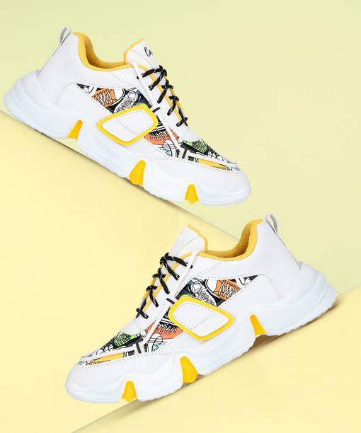 Nike yellow shoes can be a great addition to your sports ensemble. Pair these sneakers with a graphic shirt and track pants and create a chic look. Explore the unique footwear collection from Nike and select the ones that suit you best. These sneakers are made of high-quality and durable materials, and provide utmost comfort. By wearing good quality shoes, you can boost your athletic performance and avoid injuries and muscle pain. Nike yellow shoes are versatile and can be worn on different occasions and with varying outfits. Sneakers with lace-up closure are in stock. These footgears are ideal for men and you can find a variety of sizes online. Choose from UK/India sizes ranging from 4.5, 7, 8, 11, 6, 12, and so on. Refer to the sizing chart to find your ideal fit. You can explore other colours like black, blue, grey, red, white, and black, among others. Check out all the alternatives and pick the footwear based on your preference and requirement. These sneakers will protect your foot from sharp objects while running. Make sure to regularly clean these sneakers for long-lasting use. Gentle machine wash is ideal to retain the shine and look of these gootgears. Browse online and get convenient payment and delivery options.
