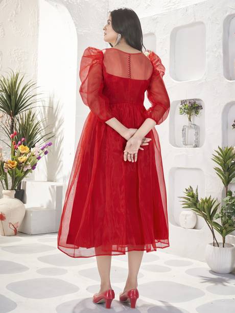 If you love experimenting with your fashion, an organza dress is a must-have in your collection. They are lightweight and can be carried easily. For special occasions, you can choose a long dress made of layers to add charm to your look. This attire comes with various neck and sleeve styles to match your requirements. They are available in both pastel and vibrant colours to match your mood and aesthetic. While buying this product, ensure that the dress fits you like a glove and makes you feel confident. You will find dresses of various lengths and patterns from which you can opt for the one that matches your personality. Purchase organza outfits from brands like Cutecumber, Sassafras, Kvish, Kicha Trend, Ethnos Fashion, and more available online. You can choose a dress with collared details to give you a sophisticated look. Pair this attire with dainty earrings and proper footwear to look effortlessly beautiful. Be it an office party or a friend's get-together, you can find dresses that match every occasion. Knee-length floral print dresses make the perfect birthday outfit and can bring you appreciative glances. Organza outfits can also be a good gifting option that can bring a smile to your loved one's face. Buy organza dresses online and flaunt your style wherever you go.