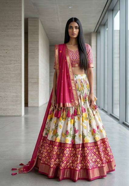 Be it festivals or celebrations; lehengas are never out of fashion due to their elegant appearance. Let the spotlight turn on you with organza lehengas at parties, mehndi functions, wedding ceremonies, receptions, and other countless occasions. The stylish lehengas are lightweight and easy to carry, letting you groove in the sangeet functions. Get the fashion edge with trendy graceful floor-length skirts paired with a crop top, traditional choli, quarter sleeves crop top, V-neck sleeveless velvet blouse, round neck choli, and other fancy blouse designs. The beautiful ensemble is enhanced with delicate net dupattas. You can pick from the pool of the latest organza lehengas that are available in plenty of styles and designs. They are available in embroidery, digital prints, floral prints, self-design, zari work, and attractive lacework. There are options of multi-colour fusions, where lehengas are made from jacquard fabrics and dupattas from art silk offering you a unique look. Designed from pure silk, silk blended fabric, delicate net, art silk, and free-flowing georgette, all the organza lehenga choli sets are comfortable to wear for long hours. You can choose from the wide range of exquisite lehengas offered by brands, such as Ethnic Yard, saajdesigns, HAVIYA, 3SIX5, FORIOX, etc. You can check out reviews and compare the prices before placing your order. The information you are reading has been last updated on 19-Mar-26.