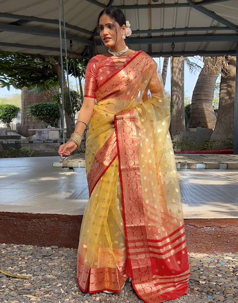 For those who would like to add organza silk sarees to their collection, shopping online for the same is a good option. Organza was first made in Turkestan. It is a breathable fabric that is used to make scarves, stoles, dupattas, sarees, dresses, blouses, evening wear, etc., for special occasions. This fabric does not crease easily and looks fresh for a long time. It is primarily made of silk or polyester fabric. It requires a bit of care, and you are sure to outshine your friends or colleagues when wearing organza silk sarees. These sarees drape well and can be stretched to an extent. PARI DESIGNER, Dutt Creation, Ganesh Reyon, KALKEE FASHION, Velvet Fab, and various other top brands have their sarees available online. To purchase the latest organza silk sarees (new), you can go online and check out the offers and the best prices for you. Go ahead and shop for these sarees with zari, embroidery, floral print, abstract print, booties, scalloped edge, patti border, weave or thread work, or any other that you fancy. Place your order online and get these gorgeous weaves delivered to your doorsteps without hassles. The information you are reading has been last updated on 24-Feb-26.