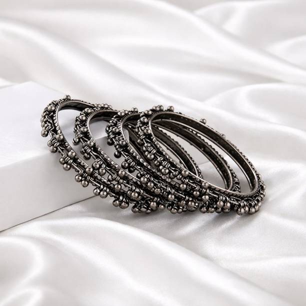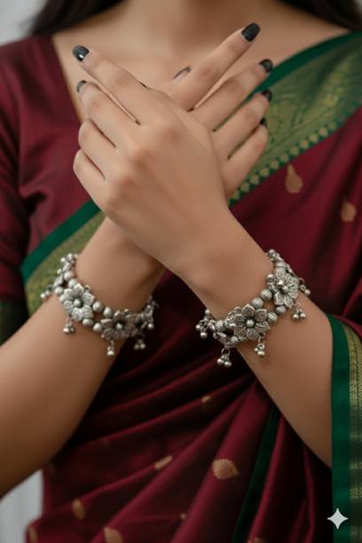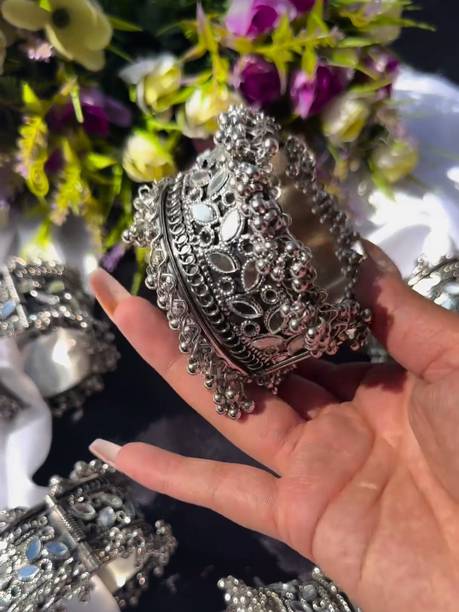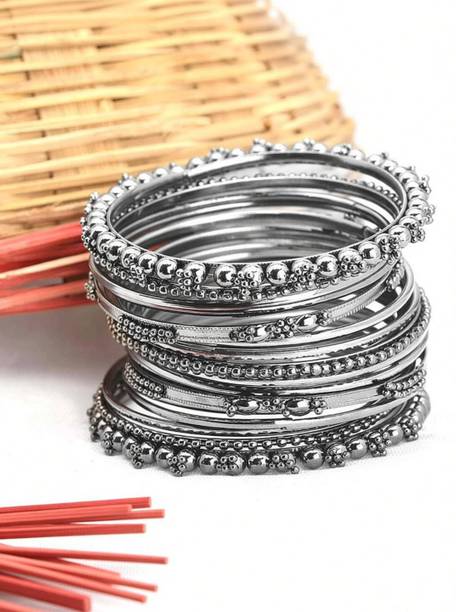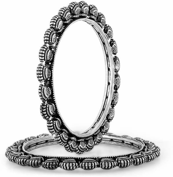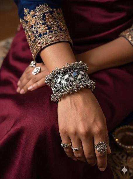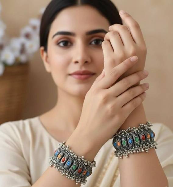 Accessorise your fashionable and traditional attire with chic and stylish oxidised bangles and jewellery available online. You can swipe and select oxidised bangles, armlets, charm bracelets, hand thongs, cuffs, kadas, kalires, ring bangles, ring bracelets, and more. Browse and explore oxidised silver and tribal silver jewellery in contemporary designs and ethnic styles to pair them with your traditional dresses like sarees, lehengas, chaniya cholis, salwar suits, or western wear like gowns, dresses, jeans, skirts, and more. You can find them in simple and classic designs or embellished and studded with ghungrus, rudraksha beads, emotion tiles, religious charms, fancy trinkets, or precious and semi-precious gemstones like agate, amber, carnelian, coral, crystal, cubic zirconia, garnet, lapis lazuli, onyx, opal, pearl, quartz, ruby, turquoise, and more. Add matching earrings, finger rings, and neckpieces to complete the look. You can buy the latest oxidised bangles and other fashion jewellery online from popular brands like Scintillare by Sukkhi, ZULKA Get your traditions, Preet Art Jewellery, Gurjari Jewellers, FreshVibes, and more. Add stylish and chic accessories and trinkets to your jewellery collection, or gift them to your girlfriends. Shop for the comfort of your home and have them delivered to your doorstep.The information you are reading has been last updated on 30-Dec-25.