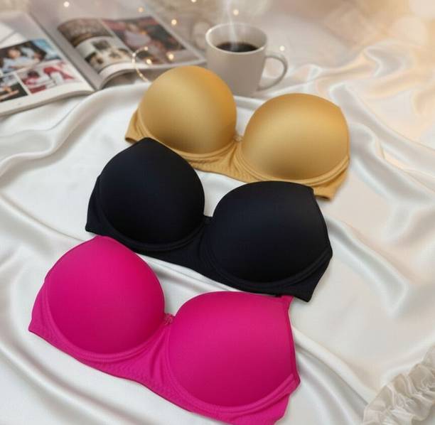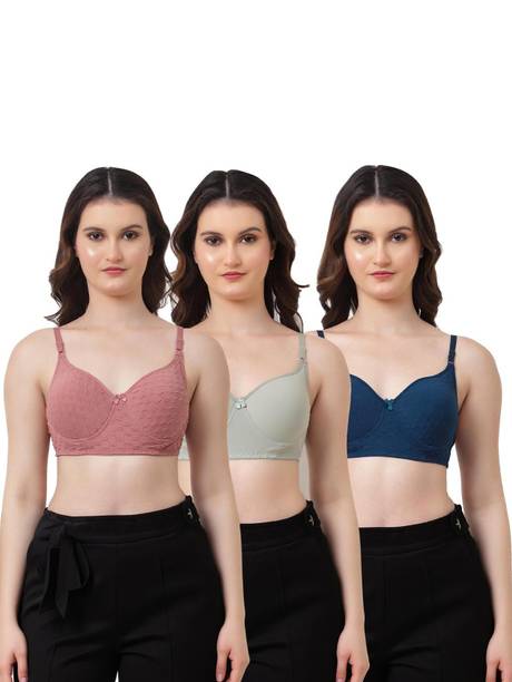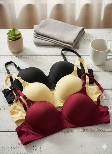 Basic innerwear for women includes padded bras that not only provide excellent support but also boost your inner confidence. The added comfort of basic lingerie allows you to both look and feel good. Designed with moulded cups, seamless edges, and smooth finishes, these lingerie options are intended for comfortable, all-day wear. Furthermore, these bras can offer you firm support to ensure you remain at ease during your various daily tasks. So you can make your selection accordingly. You can choose between underwired and wireless bras based on your comfort preferences. From lightly padded and heavily padded varieties, you can select trendy bras based on your requirements. Moreover, you can find a suitable size for various types of bras, including sports, maternity, balconette, T-shirt, strapless, push-up, minimiser, cami, cage, or training bras. Select the ones that suit you the best bras made from nylon, cotton, polyester, net, lace, modal, satin, silk, etc. Buy padded bras online from brands like V Star, Hothy, Braafee, Funahme, and others. Check the product descriptions to know more about price ranges and availability of any offers before you make your selection and complete your purchase for hassle-free doorstep delivery.