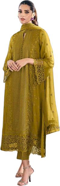 Festive Anarkalis - Pakistani designer suits with elaborate embroidery detailing on them, georgette ones with eccentric design detailing on the bottom, or heavy women’s designer suits which are cut out of silk – your options are bountiful.