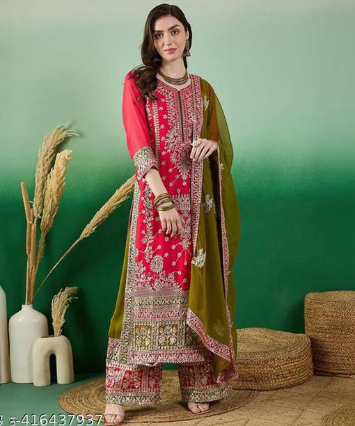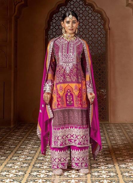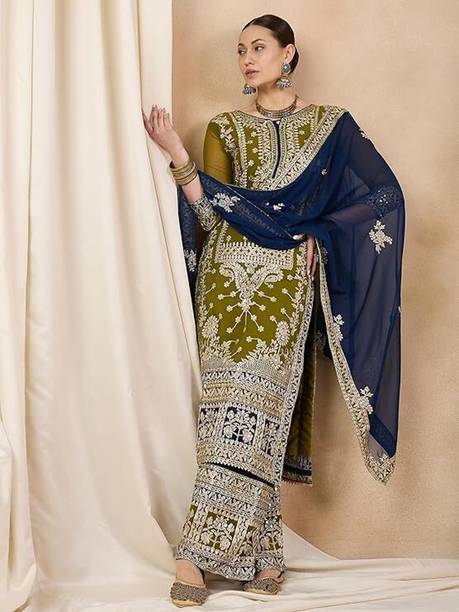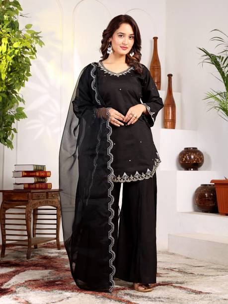 If you love an airy and breezy outfit that can make you look gorgeous, opt for palazzo suits Pakistani. These suits are designed for special occasions and are convenient to wear. Palazzo suits are a perfect combination of beauty and fashion. Types of suit options like salwar suit material, kurta and churidar material, kurta and sharara fabric, kurta and palazzo material, kurta fabric, and more are available online. The straight pants or skirts that come with the suit are easy to move around and make you look put-together on every occasion. You can purchase palazzo suits from brands like Rhythm Fabrics, KBR, Iyalafab, Wtune, Royalty Retail And Export, and more available online. You can style these suits differently to suit different events. While buying this attire, ensure that they are made with comfortable fabric. Fabric options like pure cotton, georgette, silk, crepe, heavy georgette, satin, and more are available online. To make people stop and turn around you on a sangeet evening, wear this palazzo suit available in various designs and patterns online. Pattern options like embroidered, floral print, chequered, striped, self-design, and more are available to match your style and aesthetic. Embrace your inner fashionista by pairing palazzo suits Pakistani with the right accessories.