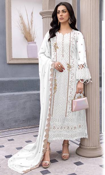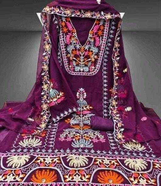 Cotton - Suits made from cotton are lightweight and comfortable, which makes them ideal for any season. You can even wear Pakistani suits that are made from cotton on an everyday basis, as they are ideal to be worn for long hours. But, they that doesn’t mean that cotton salwars are not fashionable. If that’s what you have been thinking, then you need to check out unstitched embroidered cotton salwar suit with dupatta materials from brands such as Kvsfab and Zelly Creation, MF Retail and Saara.