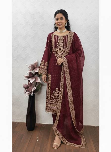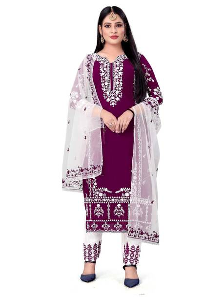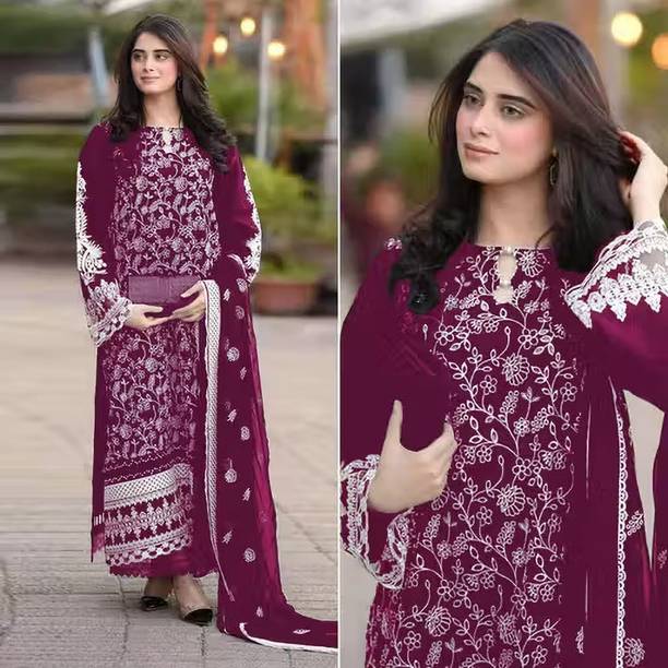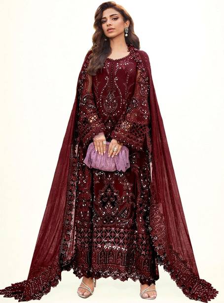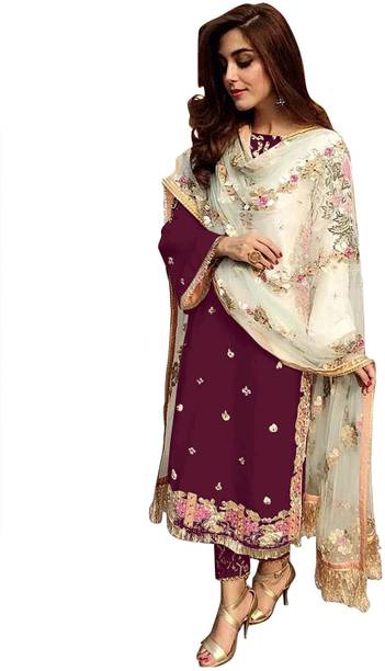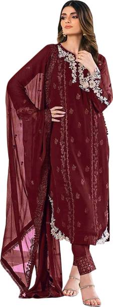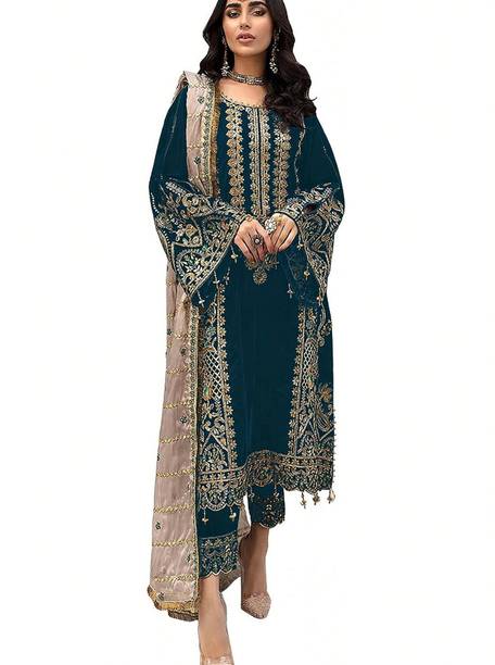 You can check out a few velvet Pakistani suit materials from brands such as MF Retail, Aryan Fashion Store, Clickedia, and Ap Enterprise.