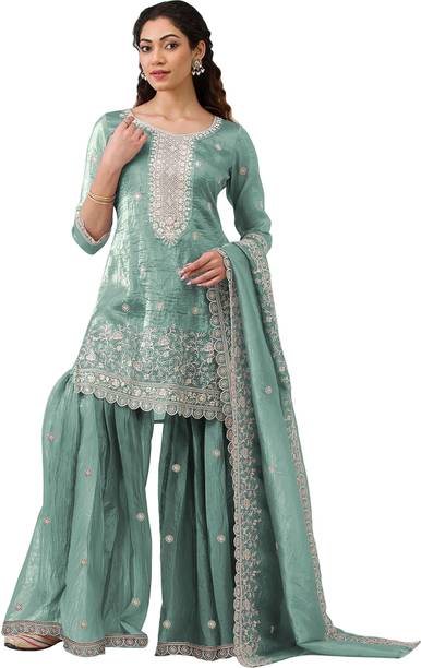 Look splendid and ravishing in Pakistani wedding dresses with rich embroideries, floral prints, vibrant colour combinations, heavy embellishments, and more. Whether it is your big day or nuptials of a dear one, you are going to need apparel and accessories for various occasions and events associated with the wedding. You can browse and choose the latest Pakistani wedding dresses as unstitched and semi-stitched salwar suit material, Anarkali kurta and bottom styled like gowns, kurta and sharara fabric, kurta and palazzo material, kurta and Patiala set, kurta and jacket with matching bottoms fabric, and more. These dresses are often adorned with detailed zari work, beads and stones work, mirror work, applique, lace, zari buta, thread work, patchwork, and more. You can find these exquisitely crafted beauties in cotton, georgette, silk, net, brocade, linen blends, satin, and more. Pair these with Jaipuri jootis or high heel sandals, meenakari and kundan jewellery, chandelier earrings, maang teeka, a fashionable bag, and other accessories to complement your looks. Complete the ensemble with dark henna applied to your hands. Browse and choose Pakistani wedding dresses from brands such as Clothina, ConchFab, VEDUU, EDGETOUCH, and more. Shop online and have them delivered to your doorstep.The information you are reading has been last updated on 16-Jan-26.