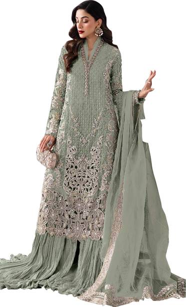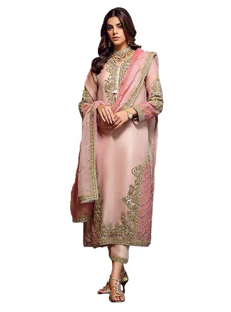 Look splendid and ravishing in Pakistani wedding dresses with rich embroideries, floral prints, vibrant colour combinations, heavy embellishments, and more. Whether it is your big day or nuptials of a dear one, you are going to need apparel and accessories for various occasions and events associated with the wedding. You can browse and choose the latest Pakistani wedding dresses as unstitched and semi-stitched salwar suit material, Anarkali kurta and bottom styled like gowns, kurta and sharara fabric, kurta and palazzo material, kurta and Patiala set, kurta and jacket with matching bottoms fabric, and more. These dresses are often adorned with detailed zari work, beads and stones work, mirror work, applique, lace, zari buta, thread work, patchwork, and more. You can find these exquisitely crafted beauties in cotton, georgette, silk, net, brocade, linen blends, satin, and more. Pair these with Jaipuri jootis or high heel sandals, meenakari and kundan jewellery, chandelier earrings, maang teeka, a fashionable bag, and other accessories to complement your looks. Complete the ensemble with dark henna applied to your hands. Browse and choose Pakistani wedding dresses from brands such as Clothina, ConchFab, VEDUU, EDGETOUCH, and more. Shop online and have them delivered to your doorstep.The information you are reading has been last updated on 03-Mar-26.