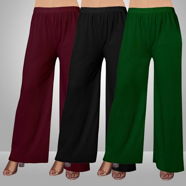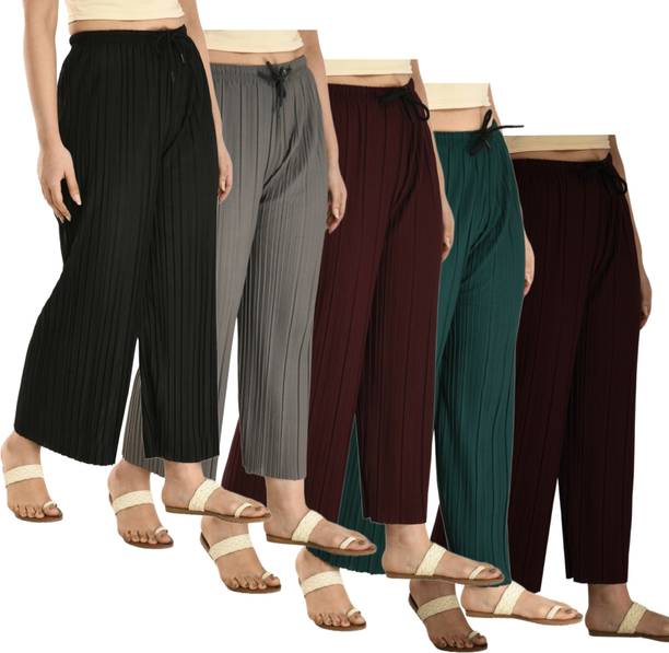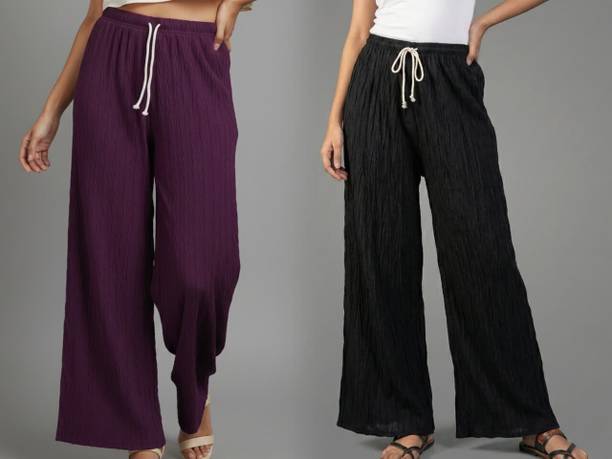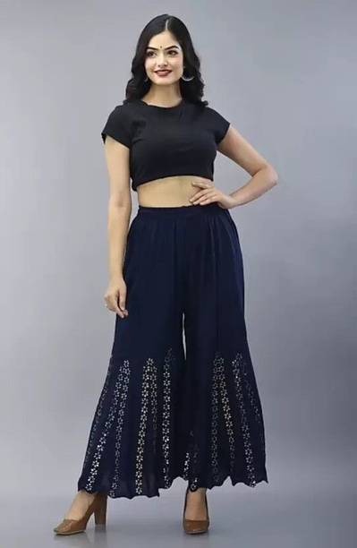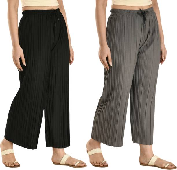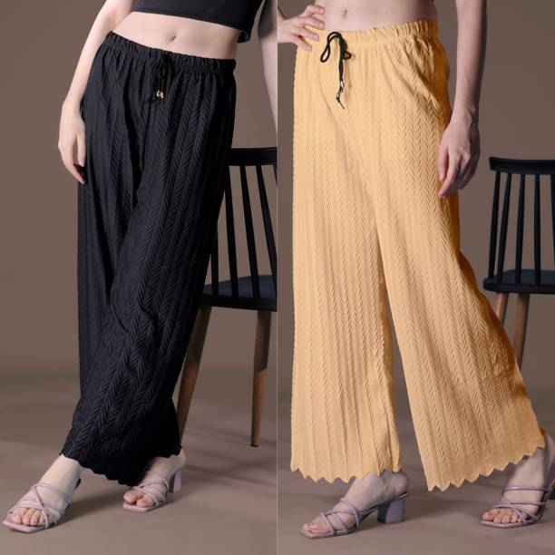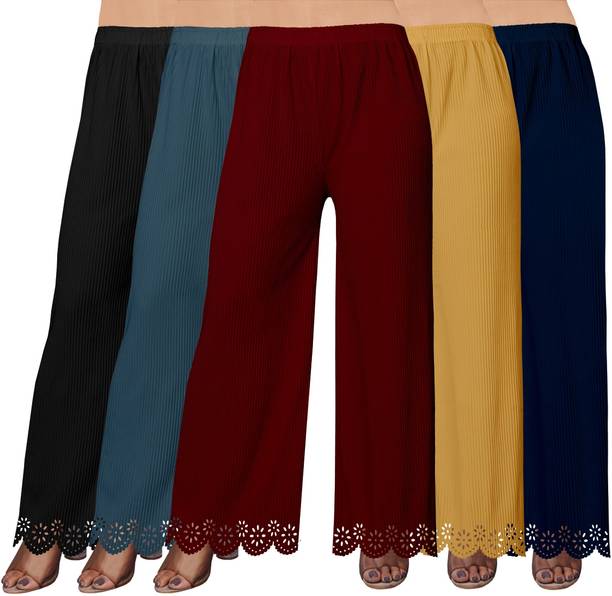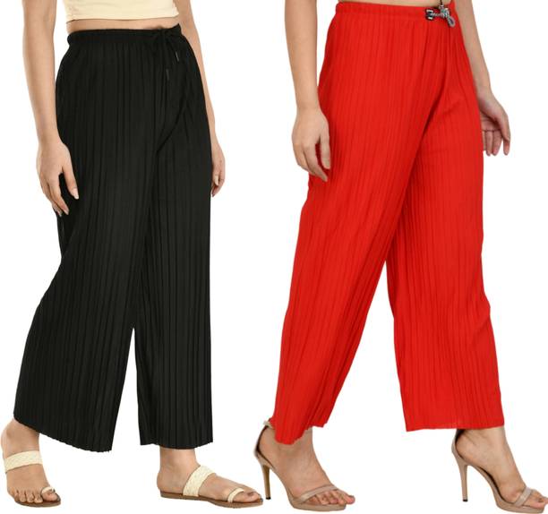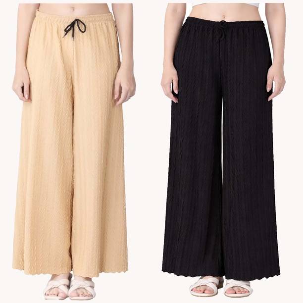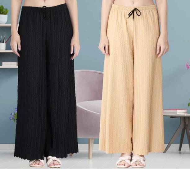 Whether it’s bright colors, comfortable fits or trendy Palazzo Pants designs that you want, you are sure to find sets that you’ll love while shopping for a Palazzo Pants online. There are plazo Pants with prices mentioned. So, if it's for a wedding, you can buy a Palazzo Pants online at a slightly higher price to look elegant and sophisticated. On the other hand, if it's for college, you can shop for Palazzo Pants at lower prices to find stylish plazo Pants designs that you can wear everyday in style. Whether it’s for college, for work, for parties or for a date, you’re sure to find the perfect plazo pants that you can buy to be stylish and comfortable.