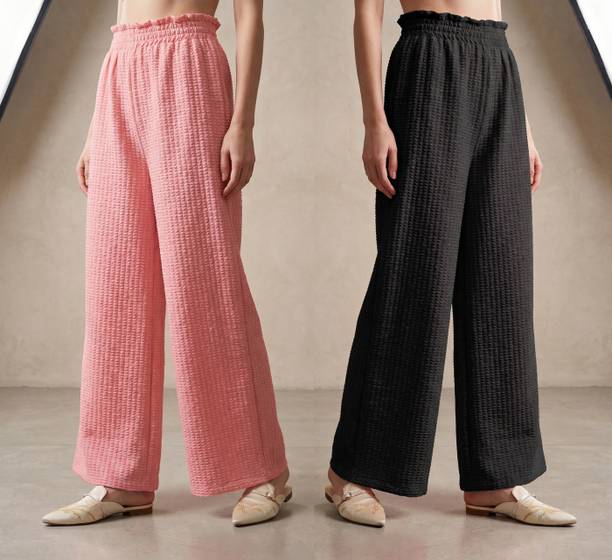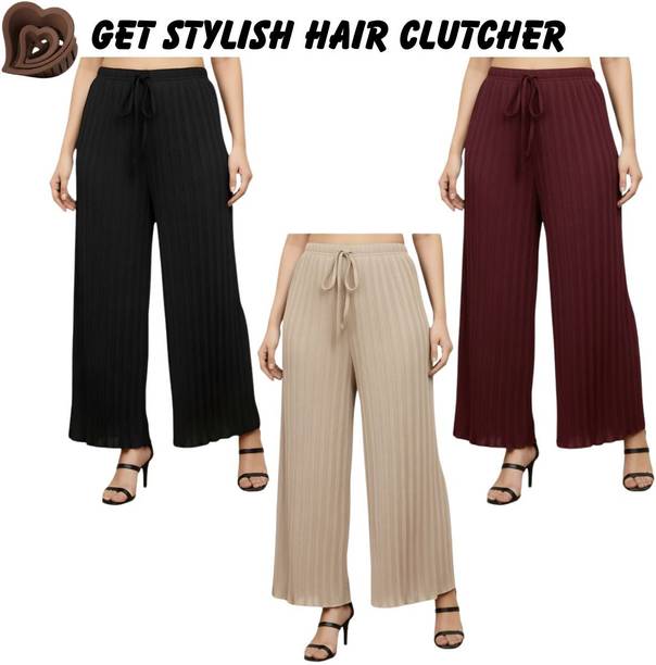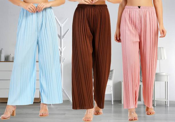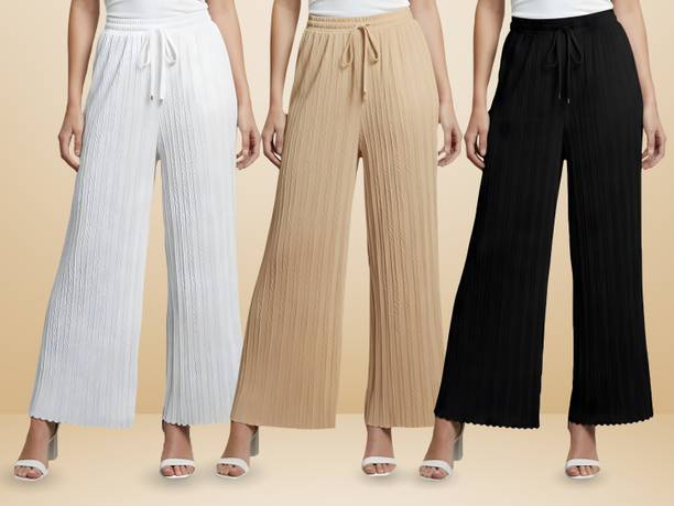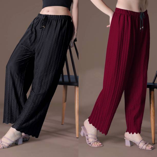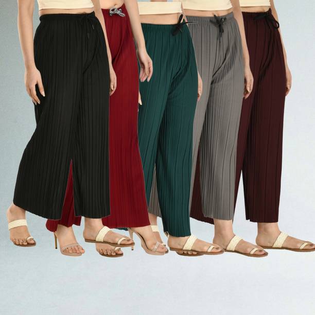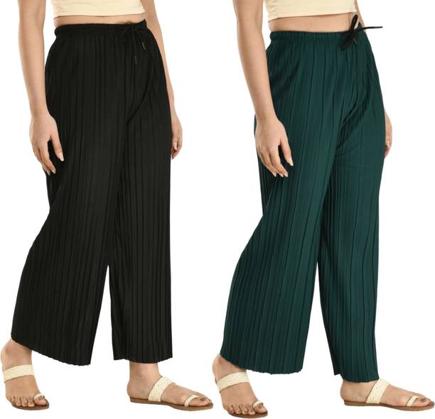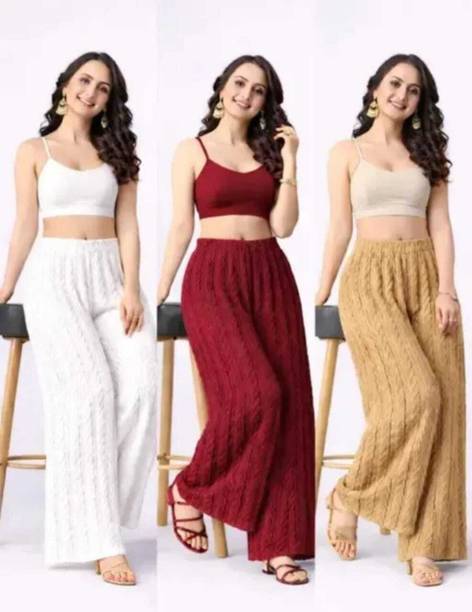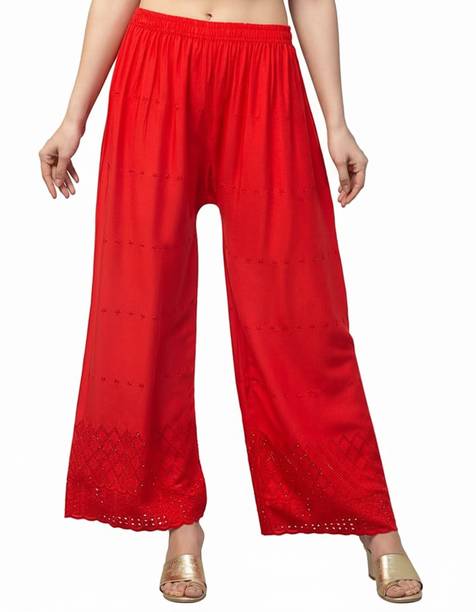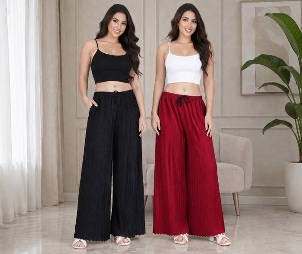 Whether it’s bright colors, comfortable fits or trendy Palazzo Pants designs that you want, you are sure to find sets that you’ll love while shopping for a Palazzo Pants online. There are plazo Pants with prices mentioned. So, if it's for a wedding, you can buy a Palazzo Pants online at a slightly higher price to look elegant and sophisticated. On the other hand, if it's for college, you can shop for Palazzo Pants at lower prices to find stylish plazo Pants designs that you can wear everyday in style. Whether it’s for college, for work, for parties or for a date, you’re sure to find the perfect plazo pants that you can buy to be stylish and comfortable.