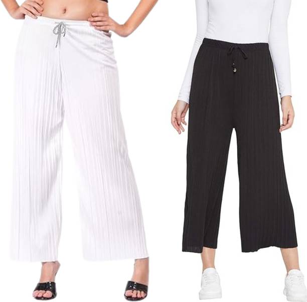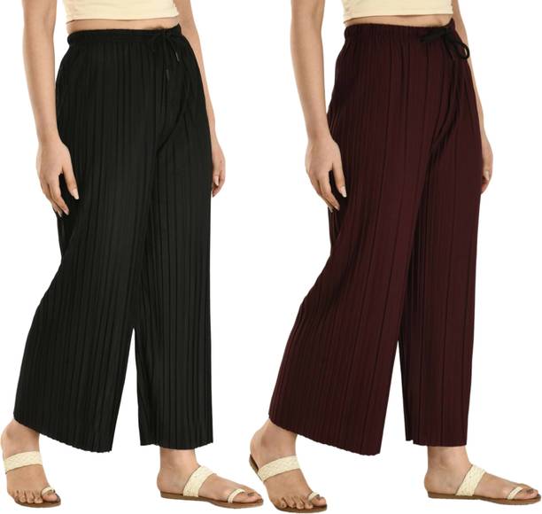 Whether it’s bright colors, comfortable fits or trendy Palazzo Pants designs that you want, you are sure to find sets that you’ll love while shopping for a Palazzo Pants online. There are plazo Pants with prices mentioned. So, if it's for a wedding, you can buy a Palazzo Pants online at a slightly higher price to look elegant and sophisticated. On the other hand, if it's for college, you can shop for Palazzo Pants at lower prices to find stylish plazo Pants designs that you can wear everyday in style. Whether it’s for college, for work, for parties or for a date, you’re sure to find the perfect plazo pants that you can buy to be stylish and comfortable.