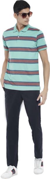 Byford by Pantaloons Striped Men Polo Neck Blue T-Shirt