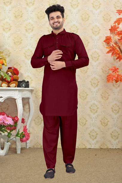 Enhance your wardrobe collection with Pathani suits. These garments come in a simple yet sophisticated design, which acts as a timeless symbol of traditional fashion. You can wear these versatile attire options on various occasions, making them a must-have in fashionable men's wardrobes. These attire options offer a unique blend of comfort and style, making them suitable for different seasons. You can get the garments in fabric options like chiffon, jute, Chanderi, dupion silk, cotton rayon, and others. If you have a summer event to attend, search for attire with a loose fit, breathable fabric, and relaxed design to stay comfortable throughout the day. Whether you are looking for kurtas to wear during hot summer months or chilly winter evenings, these suits can be your go-to option, as they can keep you comfortable while making you look effortlessly stylish. These men's garments can be worn at both casual family get-togethers and wedding events. You can buy these outfits in eye-catching designs from brands like Hangup, Royal Heritage, Iluka, Royal Kurta, Estilo Vastra, and others. From an array of options, you can go for suits that come with pyjamas to get a complete look. Swipe and select suitable men's Pathani suits to look sharp at special events. Price list last updated on 08-Feb-26.