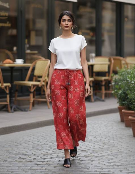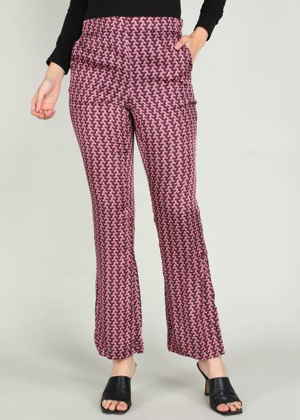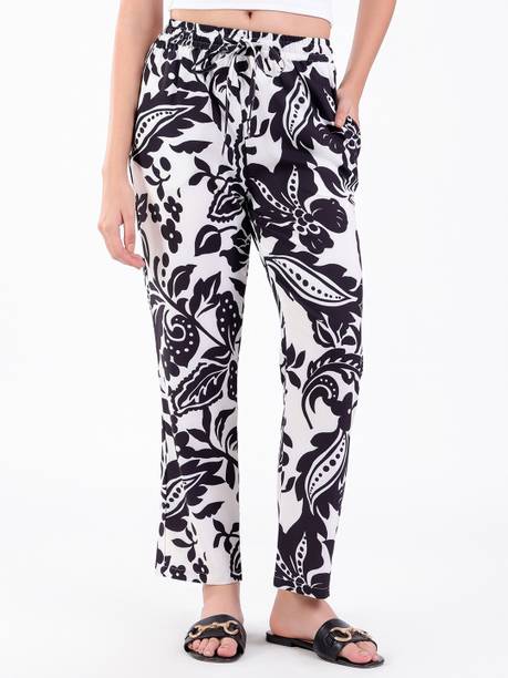 Patterned pants are versatile pieces of clothing that can be styled in different ways. You can pair them with solid colour tops, which instantly give you a classy look. While buying this bottomwear, you must ensure that it comes with a perfect fit and comfort. The suitable fabric can make you feel comfortable and make you look stylish. To attend a client meeting, you can pair these pants with a formal shirt and bellies to create a casual yet fashionable look. If comfort is your priority, you can choose pants from fabric options like cotton knitted, quick dry polyester, cotton blend, cotton lycra, cotton viscose blend, lycra blend, and others available online. Purchase patterned trousers online from brands like Pepe Jeans, Puma, Sassafras, U.S. Polo Assn, Wildcraft, and more. Men can choose pants to wear at their gyms or other casual occasions. Women planning to go on a beach vacation can opt for floral patterned trousers and pair them with crochet tops to look like a fashionista. They are available in fits like regular, boyfriend, super skinny, jogger, tapered, flared, and more to meet your requirements. Buy patterned pants of your favourite design and style them to become the centre of attraction at a family get-together or a social gathering.