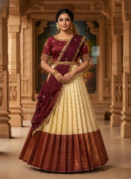Look your best during the festive and wedding seasons by donning traditional pattu lehengas readily available on online shopping sites. These elegant lehengas can be a beautiful ethnic wear option to wear to a number of different occasions. The lehengas comprise a long, pleated skirt, typically made out of lush silk fabric. The skirts have a beautiful contrast border, and the matching blouses provided with these lehengas elevate the overall look of this traditional attire. The blouses feature elegant necklines and sleeve styles that add to the beauty of these lehengas. The richness of these fabrics offers grace and elegance to these traditional wear options, making them suitable for most special occasions. You can wear them to cultural functions, festivals, and traditional ceremonies. Pair them with classic Indian jewellery pieces to effortlessly create a stunning ethnic look. You can find the latest pattu lehengas on online shopping sites. They feature a contemporary spin that adds modern style to these classic ethnic wear options. You can choose them from top brands such as Kedar Fab, PMD Fashion, Kalki, Shivangi, Amirtha Fashion, and many others. Browse online to find a plethora of choices of lehengas and shop for pattu lehengas online across e-stores. The information you are reading has been last updated on 25-Mar-26.
