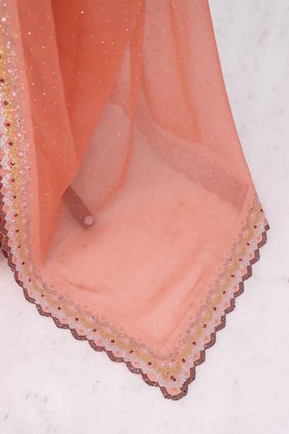 Peach-colored Embroidered Bollywood Net Saree