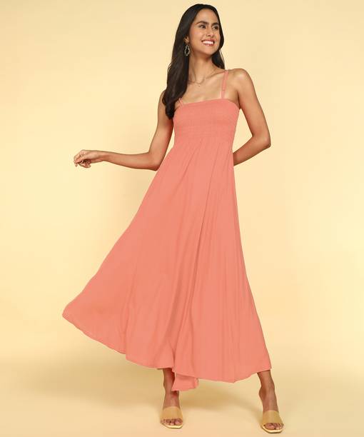 Make a great impression on the people you meet with lovely peach colour dresses available online. Your clothes speak for you, wherever you are. You can refresh your wardrobe with the latest dresses in shades of peach and pinks. You can choose from multiple shades of peach in a variety of fabrics and designs. You can select from silhouettes like an A-line, maxi, jump-suits, off-shoulders, gowns, ethnic wear, and more. You can pick a sleeveless dress, one with thin straps, long sleeves, or one with short sleeves. Fabrics choices include comfortable cotton, pleasing polyesters, charming crepe, gorgeous georgette, versatile viscose, and others. Browse through a large collection of the latest peach colour dresses online from the comfort of your home. You can pair these dresses with dainty or chunky jewellery and matching handbags, as well as matching footwear to complete the look. Popular brands that offer exquisite dress options are Rudraaksha, Stylestone, Sassafras, Tokyo Talkies, Juniper, Metro Fashion, and many more brands. Floral designs or plain, a peach colour dress can lighten up the mood all around. Browse and select the dress of your choice from the wide variety of options available online. The information you are reading has been last updated on 22-Feb-26.
