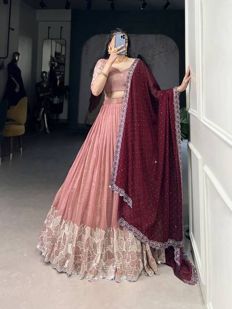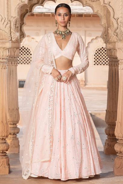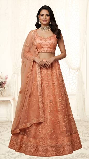 If you love pastel colours, then peach colour lehenga is a must-have in your wedding clothes collection. Brides-to-be can opt for this traditional attire to stun their guests and feel like a princess. Style it up by wearing proper accessories so that people stop and turn around you. You can also wear this to your brother or sister's wedding function to look gorgeous. They are available in various themes like crop top lehenga, zigzag glam, gold accents, yellow mellow, Banarasi lehenga, and more to match your aesthetic and style. The blend of orange and pink in your lehenga will make you stand out from the crowd. Purchase peach lehengas from brands like Aks, Divastri, Kedar Fab, RG Mart, K2Creations, and more, available online. They look radiant and can make your auspicious day more special without much effort. You can choose lehengas with or without a dupatta, according to your preference. To look good on a special occasion, it is important to feel comfortable. Fabric options like net, velvet, silk wool blend, taffeta, viscose blend, chanderi silk, and more are available to meet your needs. Choose a peach colour lehenga available in various neck and sleeve styles online and pair it up with a golden or diamond necklace to look like a Diva.