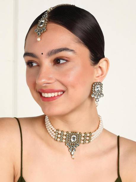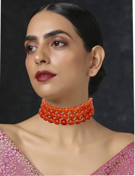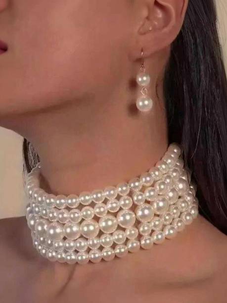 Look splendid on every occasion with beautiful pearl choker necklaces. You can buy these chokers online from trusted brands in various designs, colours, and styles. Check out the latest pearl choker necklaces in kundan polki, traditional chokers, medallion jewellery, oxidised silver jewellery, pearl jewellery, gold sets, and ethnic sets. Adorn yourself in these necklaces at wedding ceremonies, formal and social events, anniversaries, festivals, and family get-togethers. These can amplify your gorgeous ensemble and look stunning on every occasion you attend. You can get these pretty ornaments in various shades of copper, bronze, purple, pink, black, gold, turquoise, maroon, rose gold, and many more. Choose choker necklaces in beautiful designs and gemstone-encrusted options such as diamond, emerald, agate, amber, opal, onyx, ruby, topaz with pearls and more. Depending on your look of the day, you can pair these up with gorgeous lehenga choli sets, ghagra, salwar kameez, Anarkalis, bridal wear, sarees, and various other traditional attires. For sturdy designs that look dazzling, you can opt for porcelain, bronze, fabric, aluminium, enamel, silicon, tungsten, mother of pearl, glass, lac, and other materials. You can buy these brilliant pearl choker necklaces online from brands like Zaveri Pearls, CATALYST, FANCIFY, HARITA, and Sujwel.
