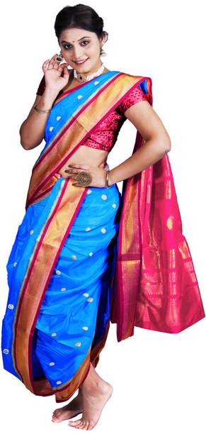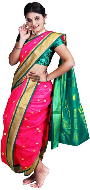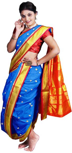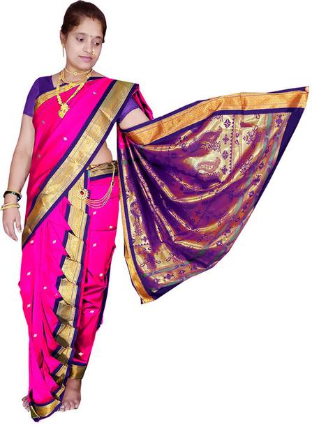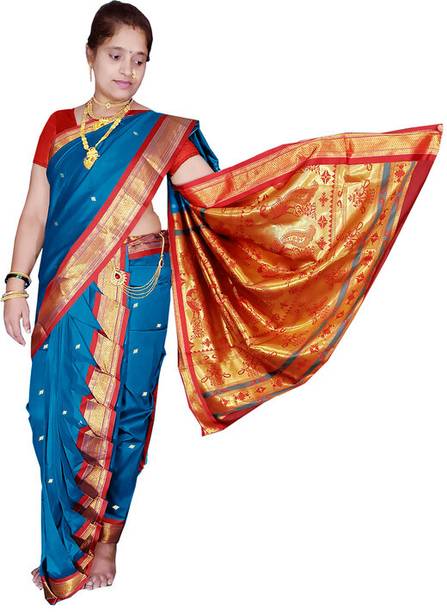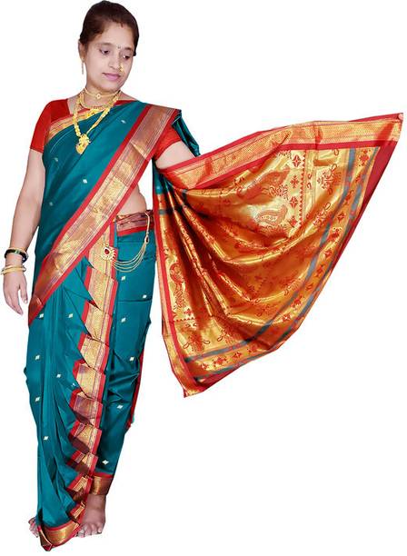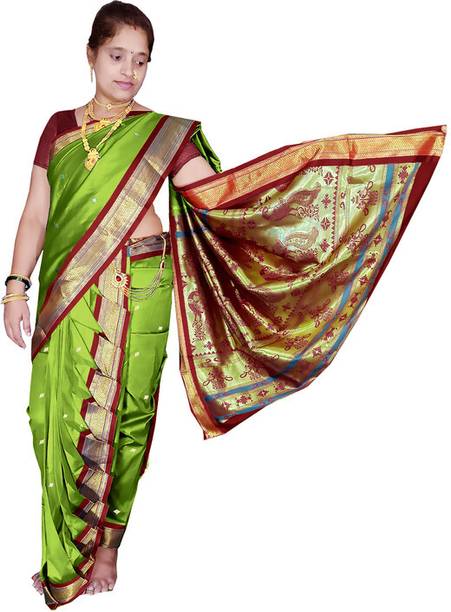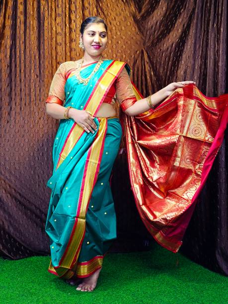 The sparkling fabric of traditional Peshwai sarees from the house of Marathas will be a good choice of saree on occasions like weddings, sangeet, pooja, engagements, and other joyous festivals. Wearing a saree will represent Peshwai heritage and carry a Marathian culture with you. These latest Peshwai sarees are woven and come in various sparkling multicolours. Bindri work and other embroidery make it more trendy and suitable for occasions. Decorative materials like pom-pom and tassels give the saree a more ethnic look. Some other varieties like digital print, zari border, various kinds of embroidery work, rich borders work, and colour blends give you the liberty to step up your wardrobe and style. Peshwai drape is usually made of pure silk fabric, but now a wide range of other fabrics like cotton and blends are available online. Brands like MS Creation, Kateshiya, Gleamrush, Bhandu, and many more offer a wide collection of sarees online. Saree comes unstitched with a matching blouse. The new collection of Peshwai is easy to select and buy online. Before purchasing them online, you can check out saree details and see pictures from different angles. Scroll, see, select, and buy it online for your upcoming occasions or gift to your loved ones.
