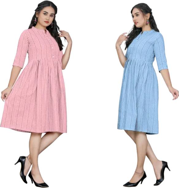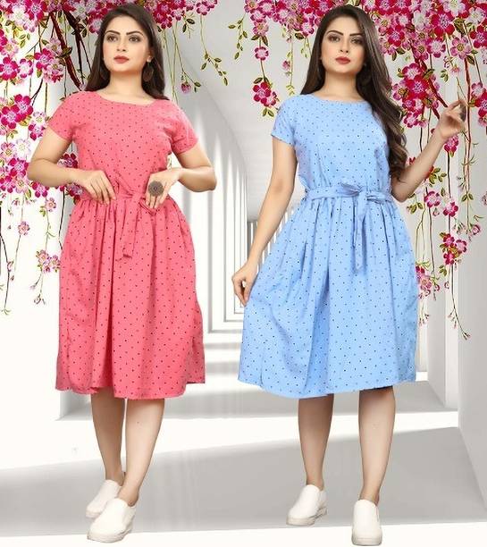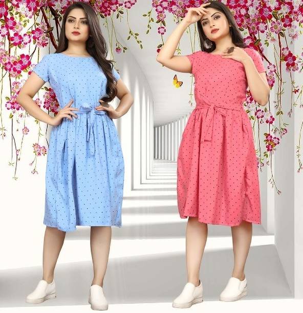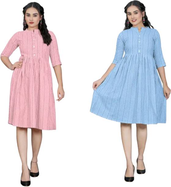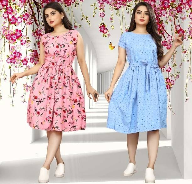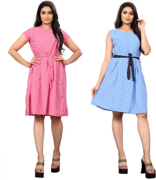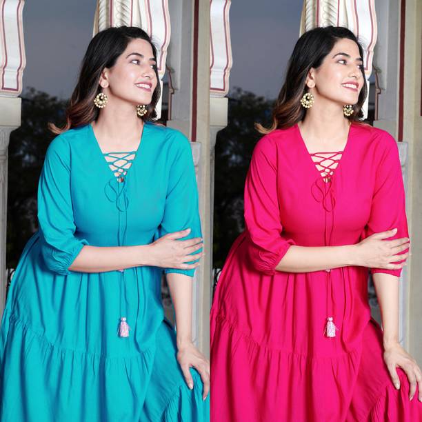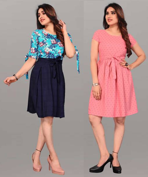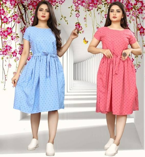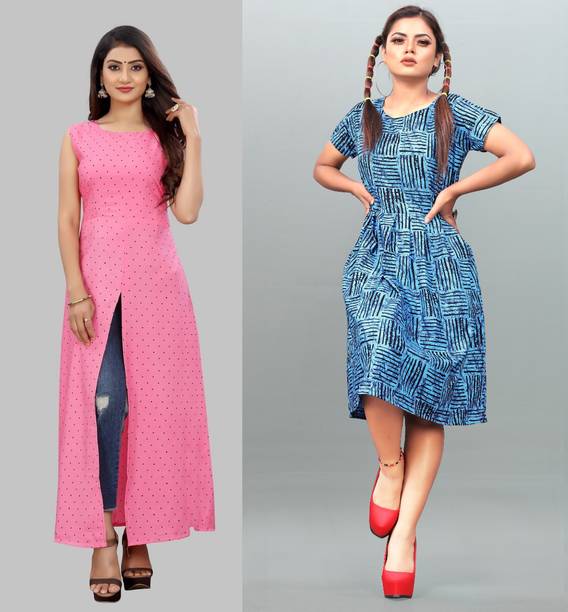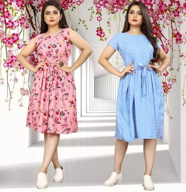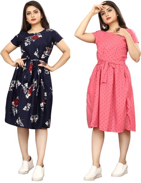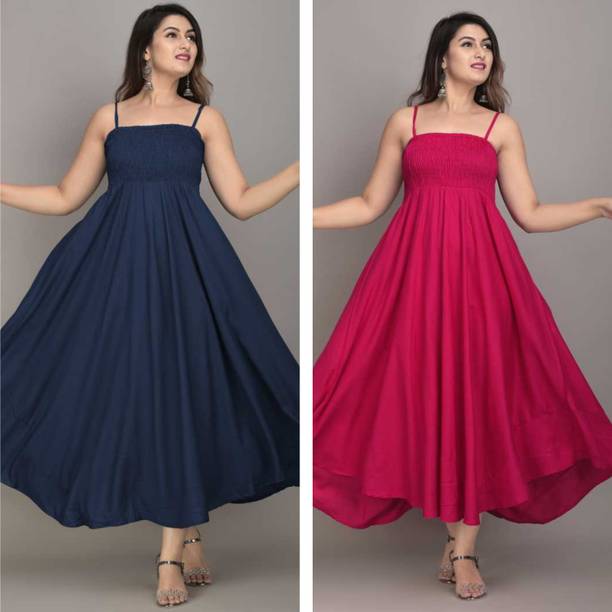 If you are looking for apparel that is a perfect blend of contemporary fashion and modernity, pink and blue dresses can be a great choice. The western outfits are flattering on all body types and can be found in combo packs as well as single sets online. While you are shopping for women’s clothing, make sure to keep certain factors in mind to find suitable garments. The apparel’s length, fabric, patterns, and colour should be considered. A wide range of pink and blue dresses are available online in distinct styles. Browse and choose from options like fit and flare, maxi, midi or knee-length outfits, gowns, bodycon, A-line and so on. Check the product description to learn more about the neck style, fabric care instructions, and more. If you are on the hunt for suitable attire for a night out with friends, bodycon styles are ideal for such occasions. The form-hugging apparel accentuates your curves and is the go-to choice for women with an hourglass physique. Compare all the alternatives and pick garments that suit your needs and requirements. Buy trendy dresses for women online from brands like Nidhi Collection, Vozica, Chandrika, Tozluk, Modli 20 Fashion, and many more.