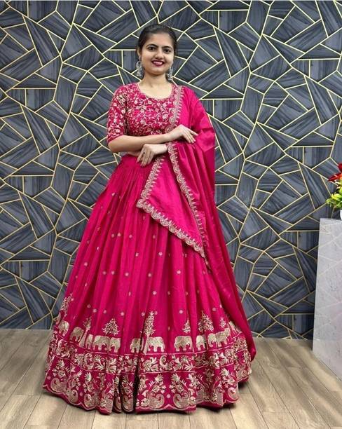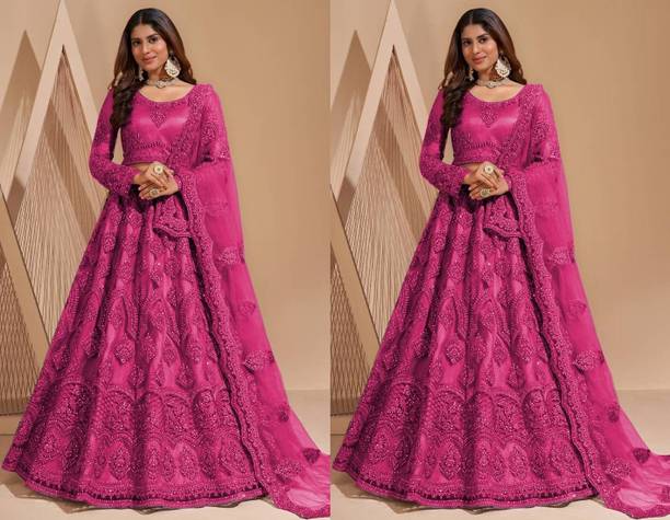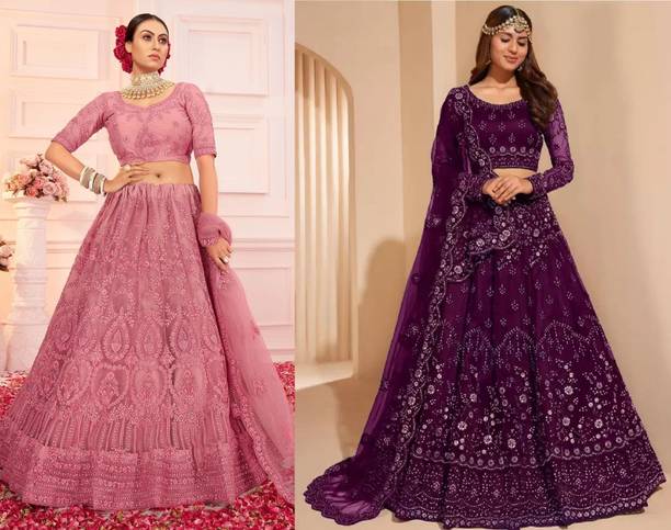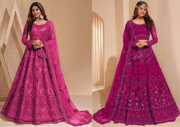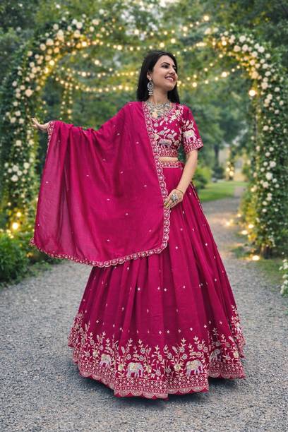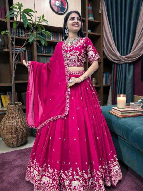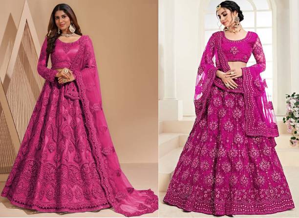 A bridal lehenga set generally consists of a dupatta, a full-length skirt, and a blouse. You can find elegant and charming pink bridal lehengas in a range of patterns and prints like embroidered, floral print, animal print, checkered, geometric print, striped, and other embellishments that suit your style and personality. You can also choose from fabric options like silk, velvet, satin, cotton, chiffon, georgette, net, and more. Shop for a pink bridal lehenga online from the comfort of your home.