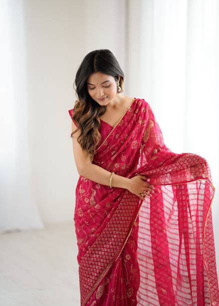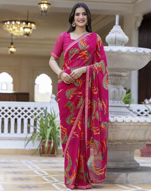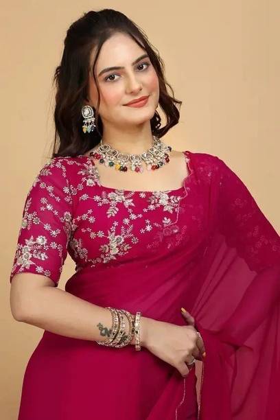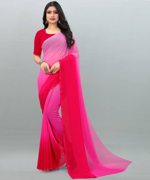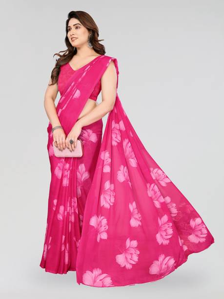 Step out in style in an elegant pink georgette saree. The charming pink colour of these ethnic clothing options looks elegant and fashionable. Delicate florals, contrasting checks and stripes, and ornamental embroidery on these sarees make them suitable for everyday wear as well as for family gatherings and functions. You can find various hues like soft pink, magenta, fuchsia, blush, rose, peach, rouge, and hot pink among the products displayed at web stores. Rich and vibrant shades of pink can be a perfect choice for ceremonies like weddings, while pale or pastel pink is ideal for casual wear. The soft georgette fabric is light and airy. It drapes well and is breathable, making it suitable for hot climates. Pink, as a colour, particularly agrees well with spring and summer festivities and events. To enhance the look and style of these attires, you can add delicate pearl jewellery and accessories. You can browse online shopping websites to find a plethora of pink georgette sarees in various design styles. You can select gorgeous variants from several brands, including A To Z Cart, Abeer Designer, Aksh Fashion, Butterfly Fashion, ChicPlus Designer, and Aarti Apparels. You can shop your preferred pink georgette saree online across e-stores. The information you are reading has been last updated on 22-Feb-26.