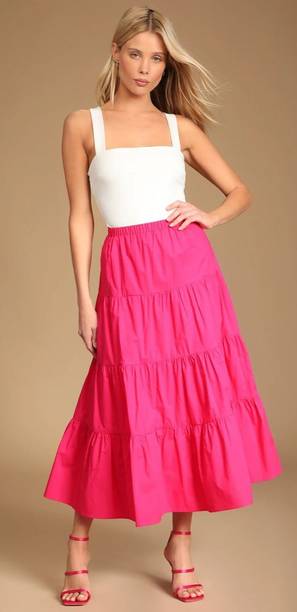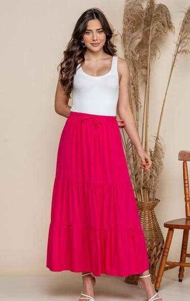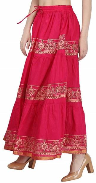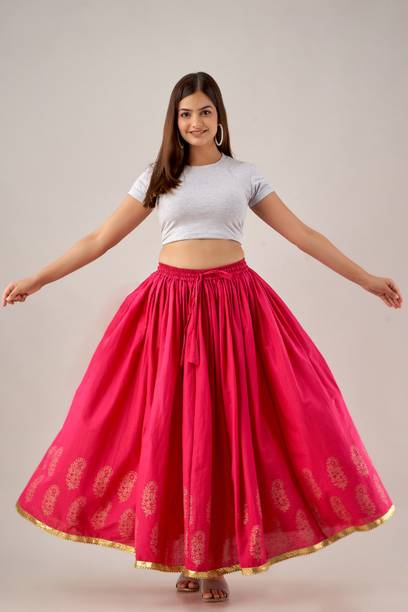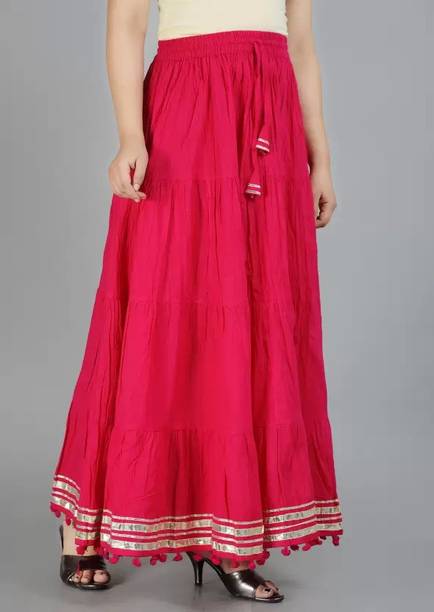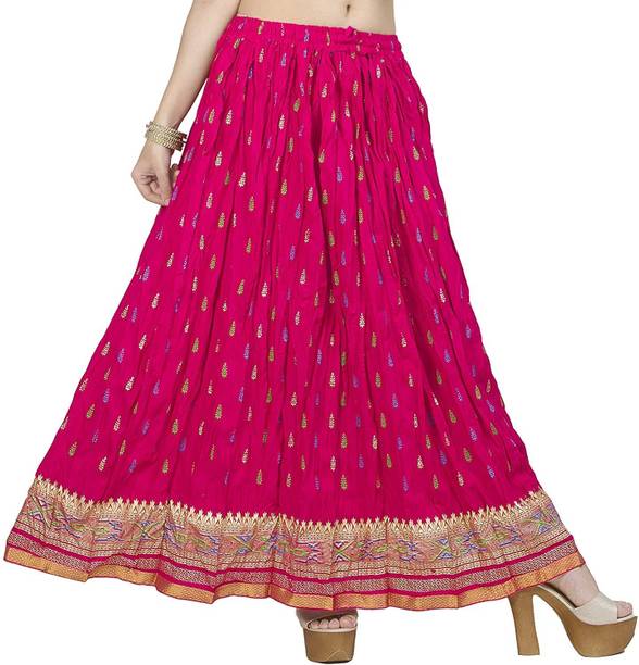 If you have special events to attend, flaunt your style with pink long skirts. You can pair the bottom wear with a pastel colour crop top to look effortlessly gorgeous. Types of skirts include flared, regular, pleated, pencil, A-line, straight, broomstick, and gathered are available online to meet your requirements. The pink skirt is a must-have in your wardrobe as it can make you look party-ready in no time. For special events like birthdays, anniversaries, or wedding invitations, you can pair the skirt with a sleek necklace and comfortable footwear to complete the look. Brands like Ace, Adokedo, Anha Creations, Archiecs Creation, Berrylush, and others sell pink skirts online. Elevate your stylish collection with this skirt available in various designs and patterns. Fabric options like net, pure cotton, art silk, cotton crepe blend, jacquard, and others are available online from where you can choose the one that can keep you comfortable. Indulge in timeless fashion by slipping into a long-length pink skirt - a must-have for the festive season. Pattern options like solid, floral print, colourblock, dyed, geometric print, woven, abstract, and more are available to meet your style preference. For a traditional event, search for a pink long skirt and pair it with a matching crop top and a Banarasi dupatta to complete your look.