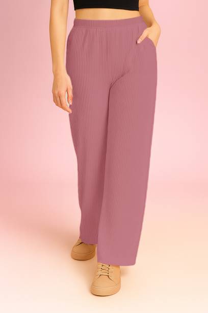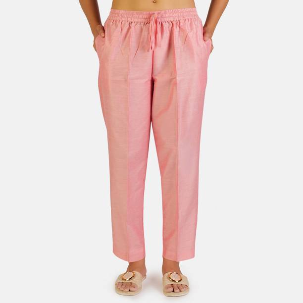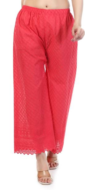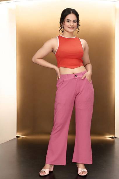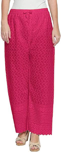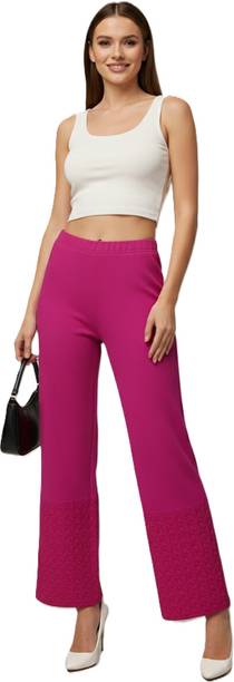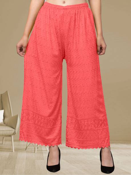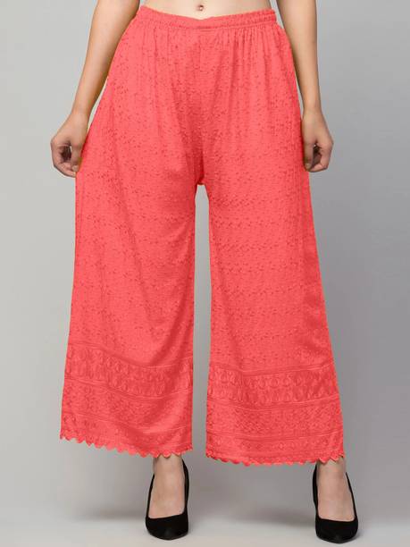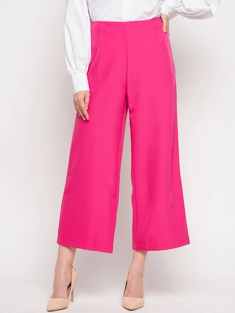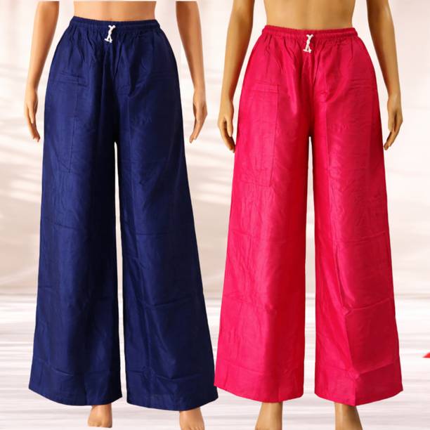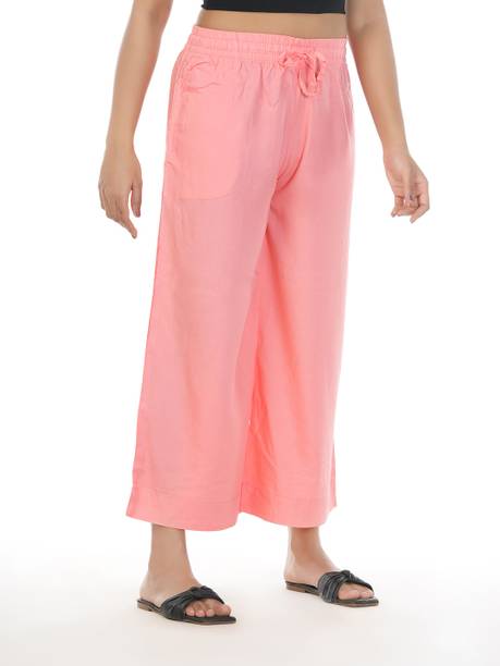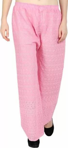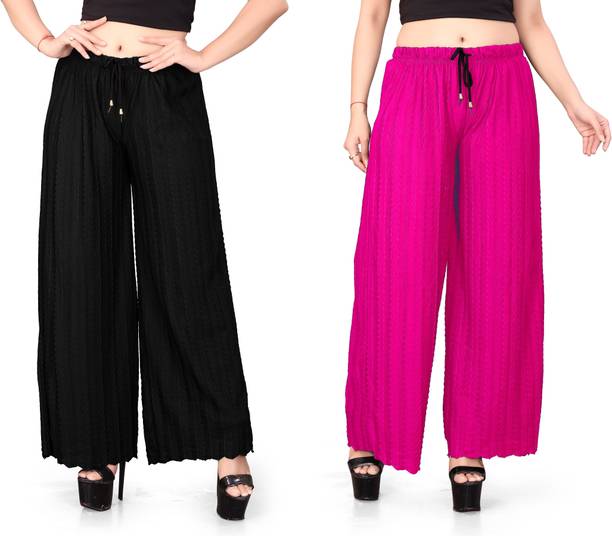 Are you on the hunt for fashionable and comfy outfits? Explore pink palazzo and more online displaying modern styles in women’s clothing. Contemporary apparel comes in distinct patterns, colours, and sizes. Browse and choose from options like solid, fit and flare, printed, flared, stripes, and so on. You can create an indo-western look by opting for stylish pink palazzo pants. You can team up palazzo with a long kurta, casual T-shirt, crop top, or embroidered shirt, as per your style preference. Complete the look by putting on high heels or flat sandals along with matching jewellery pieces. The trousers can be worn on festive occasions, casual outings, formal gatherings, and more. The fusion wear is made of breathable fabrics, which makes it suitable for everyday use. You can choose from crepe, viscose rayon, wool, and polyester. Check the product description to get more information on the fit, rise, fabric care instructions, and more. Kurta and palazzo sets, as well as a single palazzo, are both available online. Compare the alternatives and pick the wide-flared trousers that suit your requirements. Buy trendy bottom wear from brands like Cloud Star, Get Styled, Shree Shital Print, Aurelia, Tokyo Talkies, and many more.