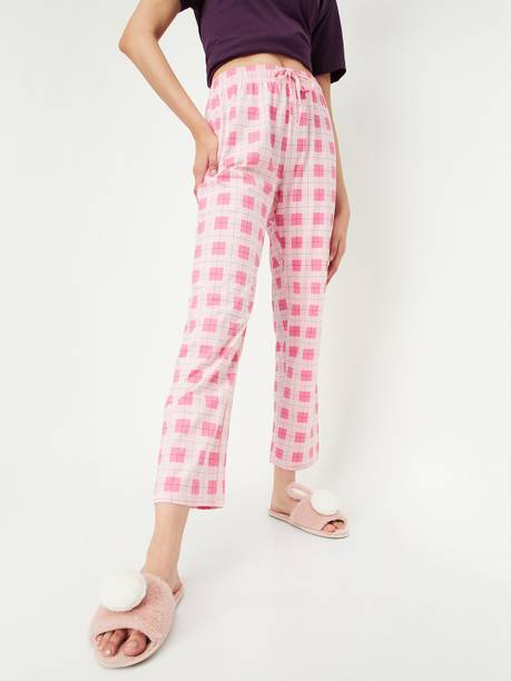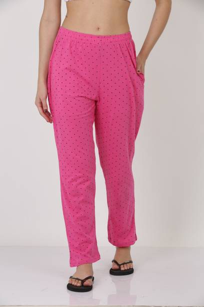 Pink pyjamas are preferred by girls and women of all ages as casualwear, sleepwear, or winter wear. The comfortable garment is available in different patterns such as solid, chequered, embellished, printed, striped, polka dots, etc. Find a suitable pyjama with an appropriate size and shape to make your nights more comfortable. You may buy the pyjamas in packs from one to ten in the same or different designs. Choose from full or ankle length as well as knee length pyjamas, based on your needs. The pants are available in a range of fabrics such as pure cotton, rayon, spandex, polyester, modal, etc., and different blends. Select closure varieties based on your comfort from elastic, drawstring, or button fastening. A simple handwash or a light tumble wash in a washing machine followed by line-drying will ensure durability. There are many themes in the pants, such as straight fit, bell bottoms, skinny fit, loose fit, etc. Check out the various types and designs available in the pyjamas and explore offers and best prices online. Buy the latest pink pyjama (new) styles from brands such as Dreamz by Pantaloons, Jack and Hardy, Ginger by Lifestyle, The Cotton Company, The Souled Store, and more. Order a pink pyjama online for convenient doorstep delivery. The information you are reading has been last updated on 05-Oct-25.