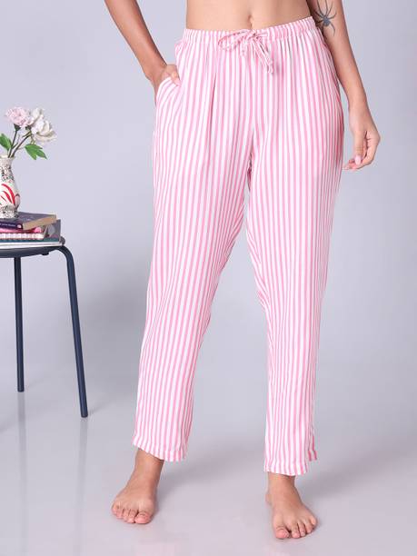 Pink pyjamas are preferred by girls and women of all ages as casualwear, sleepwear, or winter wear. The comfortable garment is available in different patterns such as solid, chequered, embellished, printed, striped, polka dots, etc. Find a suitable pyjama with an appropriate size and shape to make your nights more comfortable. You may buy the pyjamas in packs from one to ten in the same or different designs. Choose from full or ankle length as well as knee length pyjamas, based on your needs. The pants are available in a range of fabrics such as pure cotton, rayon, spandex, polyester, modal, etc., and different blends. Select closure varieties based on your comfort from elastic, drawstring, or button fastening. A simple handwash or a light tumble wash in a washing machine followed by line-drying will ensure durability. There are many themes in the pants, such as straight fit, bell bottoms, skinny fit, loose fit, etc. Check out the various types and designs available in the pyjamas and explore offers and best prices online. Buy the latest pink pyjama (new) styles from brands such as Dreamz by Pantaloons, Jack and Hardy, Ginger by Lifestyle, The Cotton Company, The Souled Store, and more. Order a pink pyjama online for convenient doorstep delivery. The information you are reading has been last updated on 08-Mar-26.