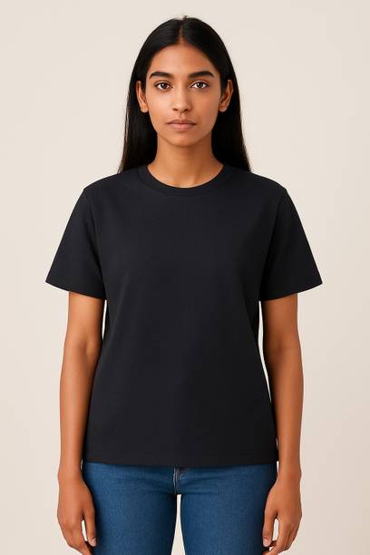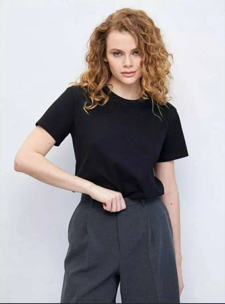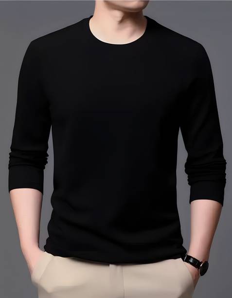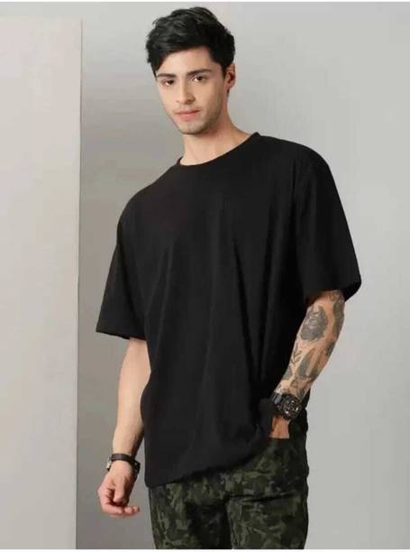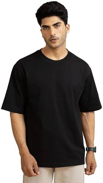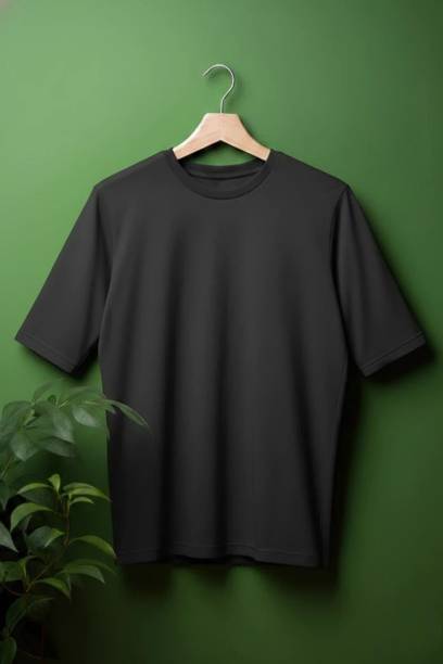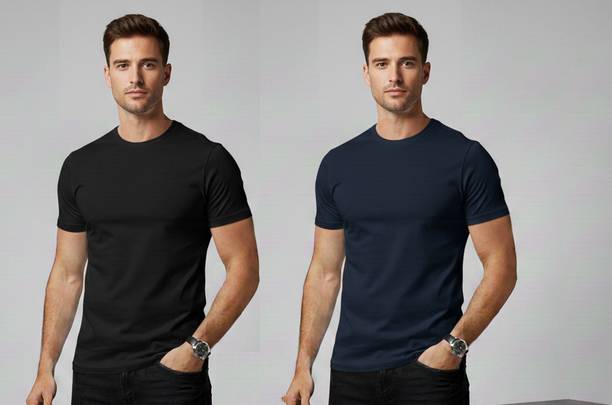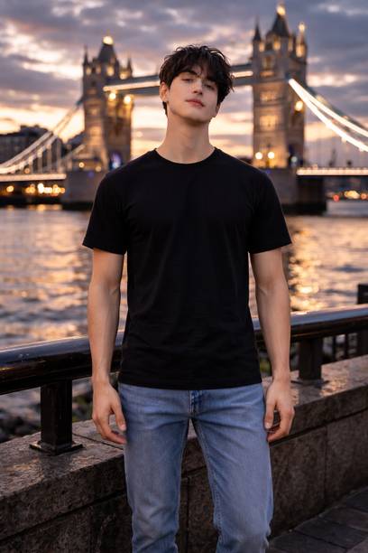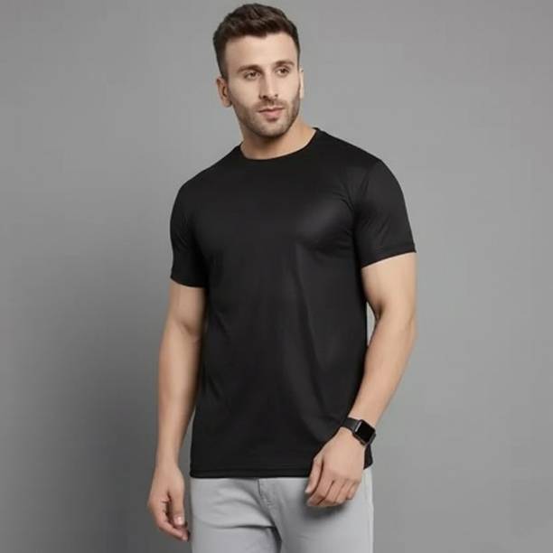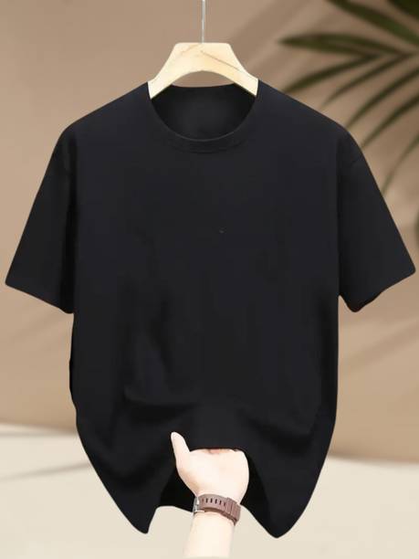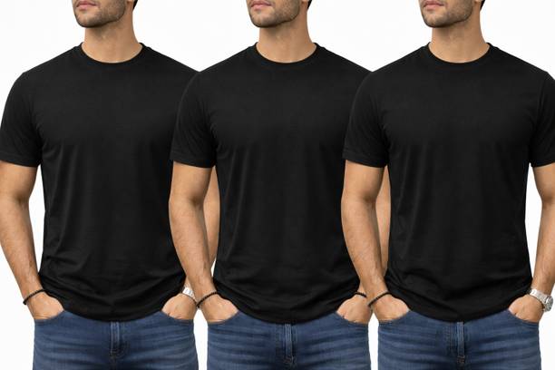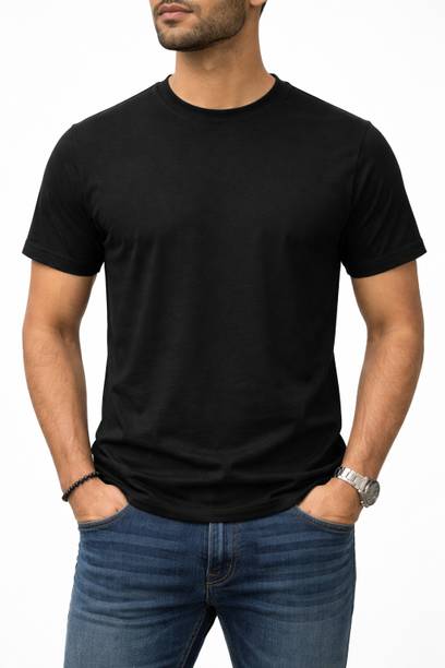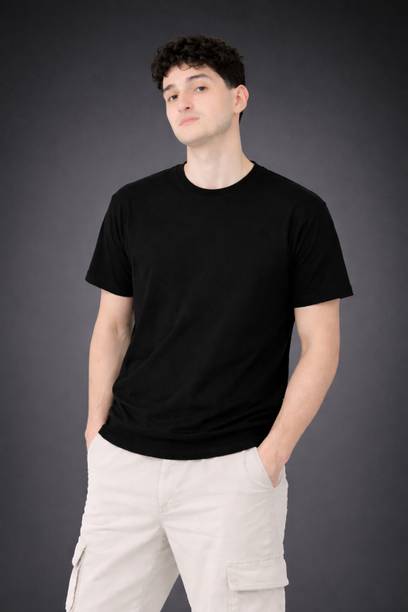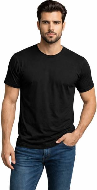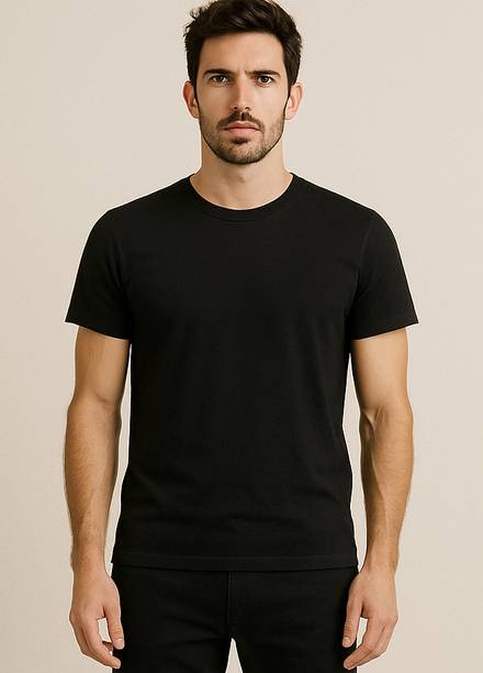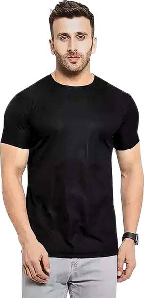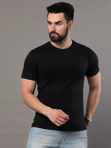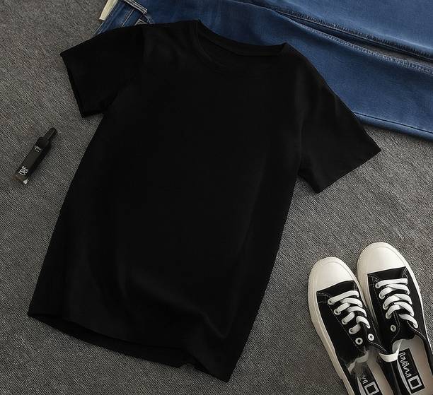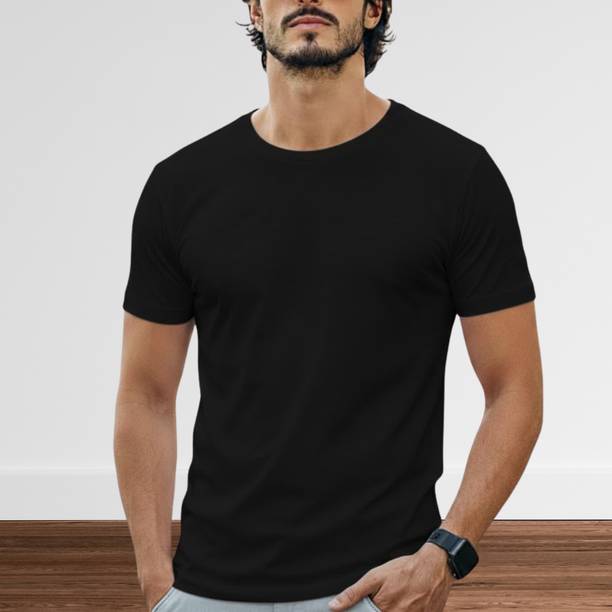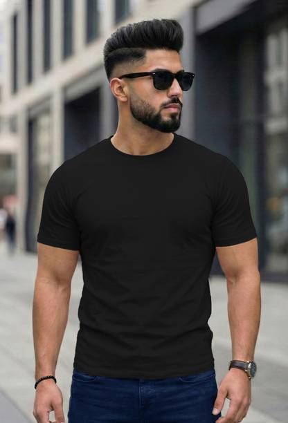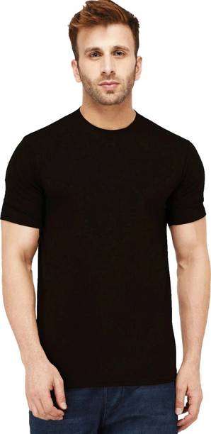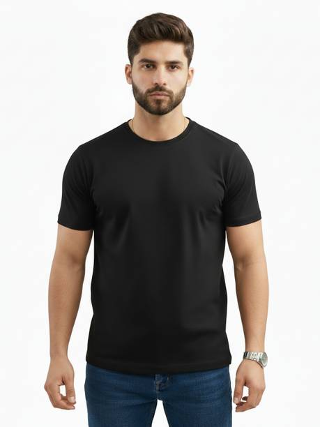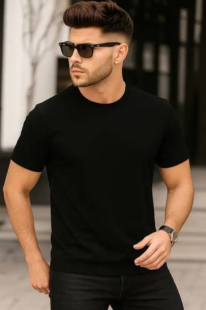 d.) Hi Fashion Solid Men Round or Crew Black T-shirt